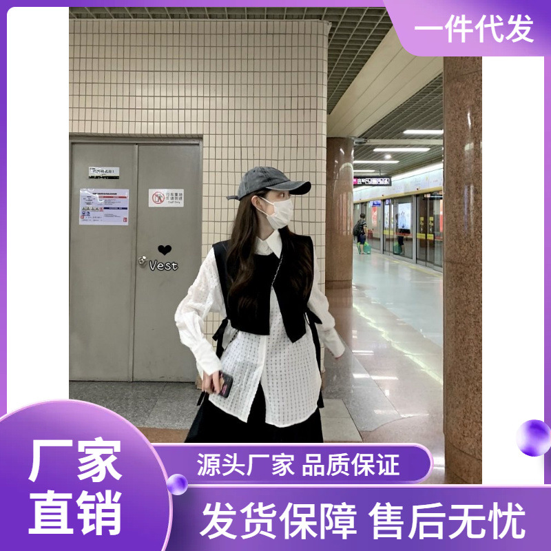 | nameOriginal | Black Elegant Shirt Wearing Vest Women's Spring Design Sense Niche Stacked Short Cardigan Jacket |