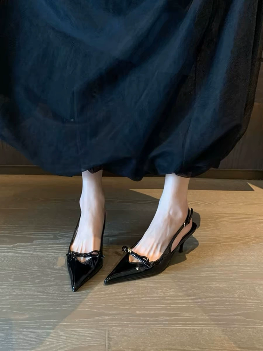 | nameOriginal | Black elegant spring and summer stiletto heels with skirt and toe-cap sandals |