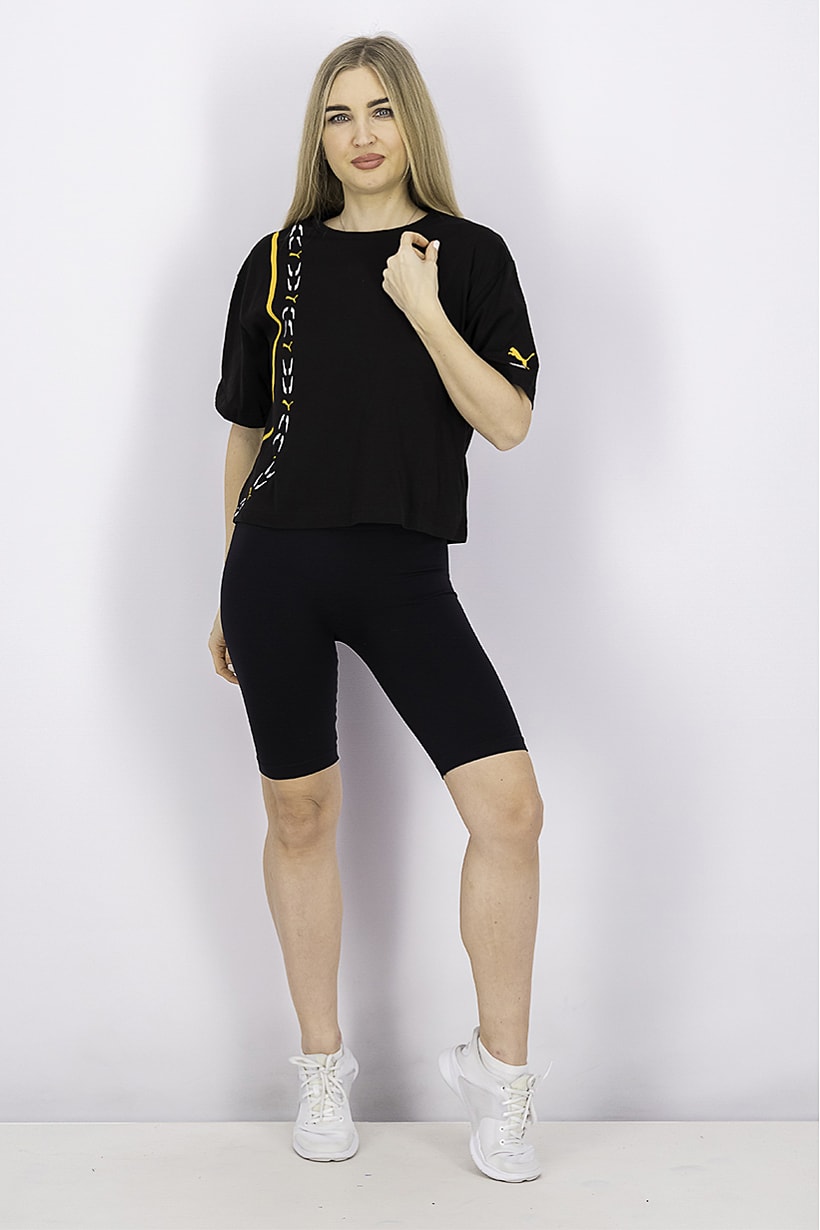 | descriptionOriginal | Care : Machine washable, Fit : Regular fit, Ideal For : Women, Size shown : US, Sleeve Length : Short Sleeve, Thickness : Light, Type of Sport : Training, Types of Hem : Straight hem, Types of Neckline & Collar : Round neckline, Types of Sleeve : Short sleeve, Disclaimer : Product color may slightly vary due to photographic lighting sources or your monitor settings., Fabrics : 100% Cotton, Occasion : Sport, Pattern & Print : Graphic print, Sportswear Type : T-Shirt, Types of Closures : Pullover, Color Family : Black, |
