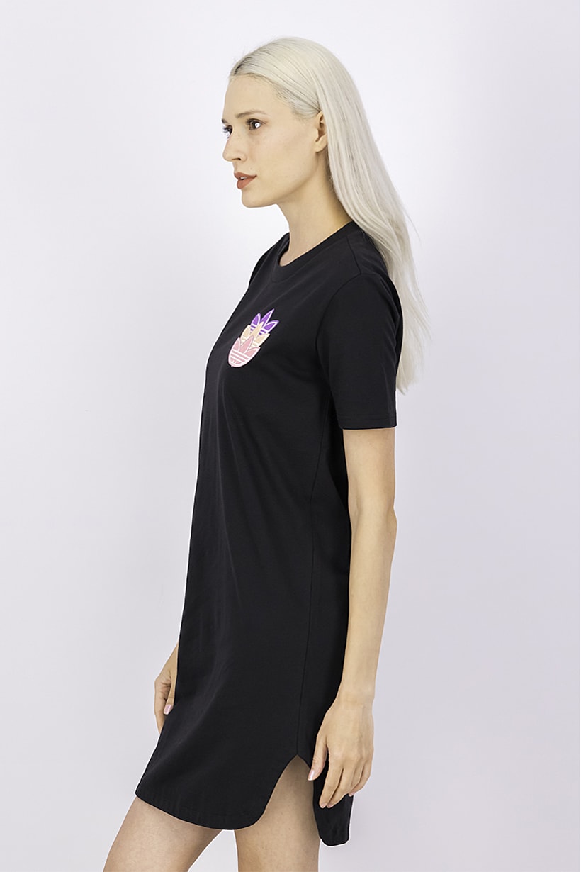 This product is made of 100% cotton and is suitable for machine washing. It has a sportswear fit and is designed for training. The dress has a light thickness and features an embroidered pattern and print. It can be easily put on with a pullover closure. Please note that the product color may appear slightly different due to photographic lighting or monitor settings. The dress is available in black and the size shown is for Japan.