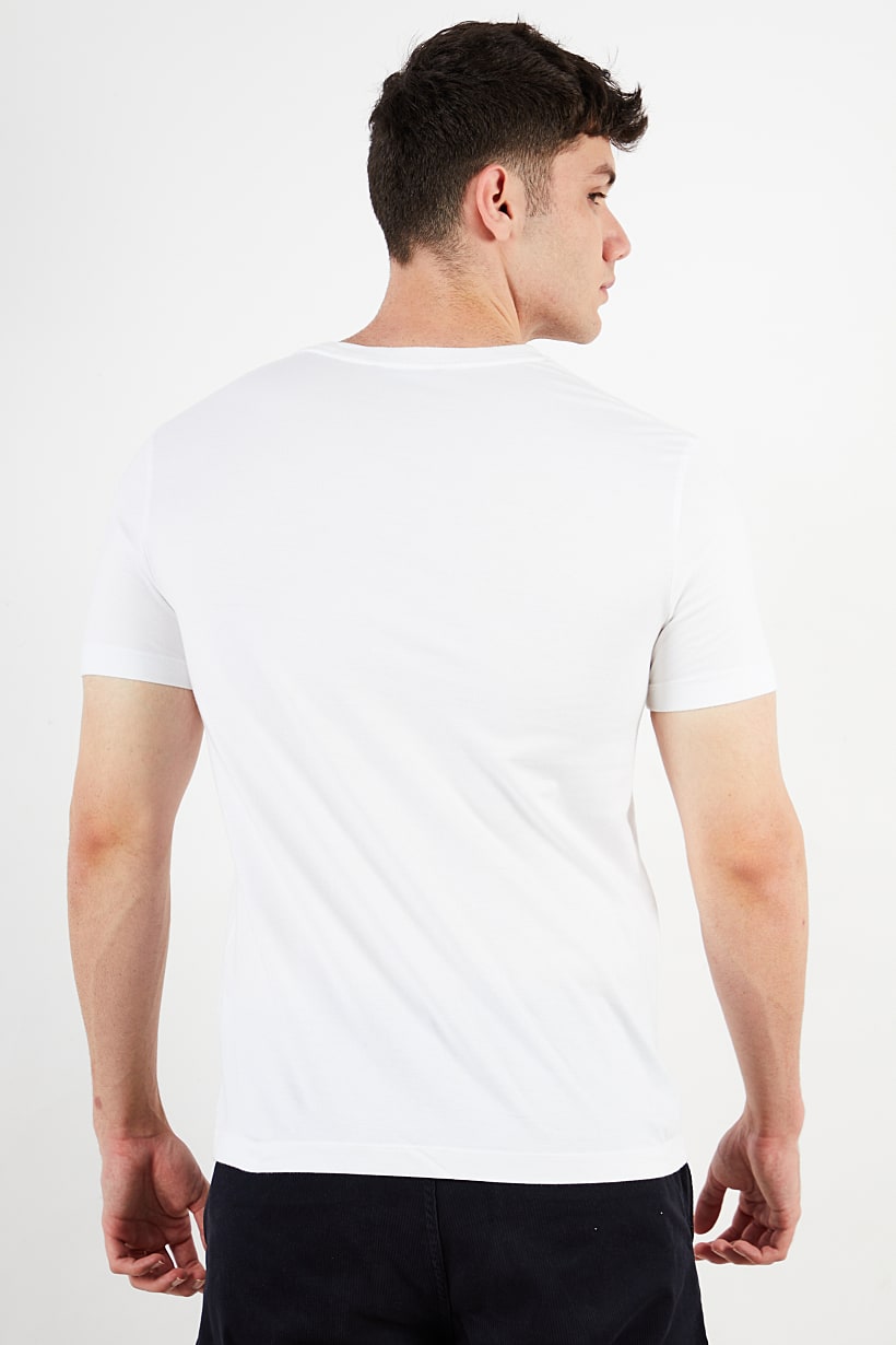 This product is recommended to be hand washed and has a regular fit. The size displayed is in international sizing and the fabric is made of 100% cotton, with a light thickness suitable for walking. The T-shirt is designed with an embroidered pattern and print, making it a great addition to your sportswear collection. The color of the T-shirt is white and it is suitable for various sports activities.