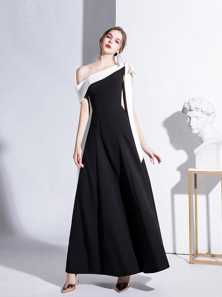 | nameOriginal | Black Evening Dress Women's 2023 Autumn New Arrival One-Shoulder Celebrity Elegant Banquet Dress Slim Long Daily Dress |