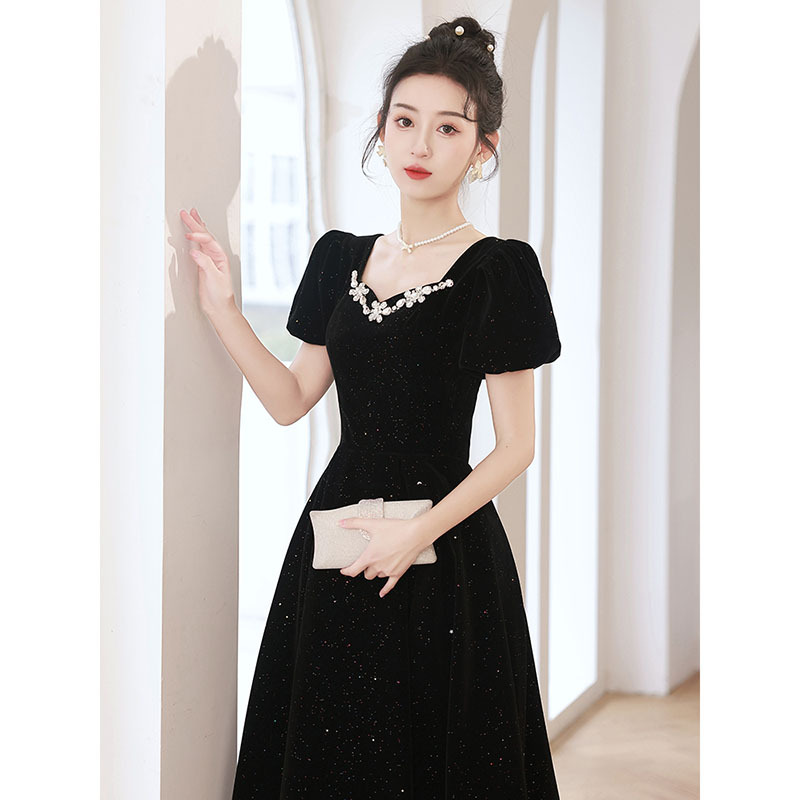 | nameOriginal | Black evening dress women's banquet elegant light luxury niche high-end French Hepburn style art exam adult ceremony high sense |