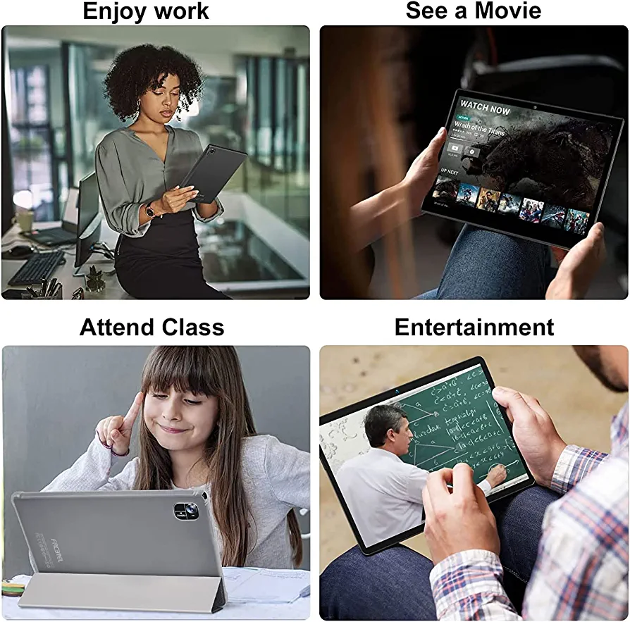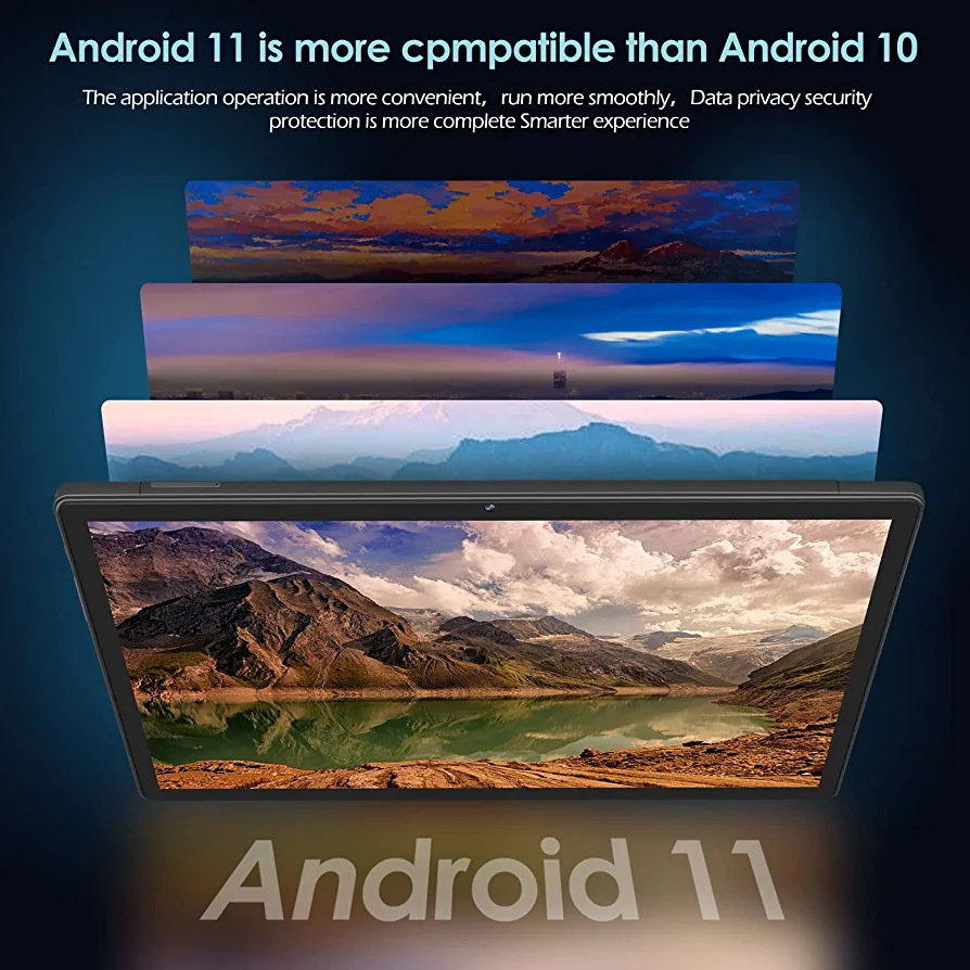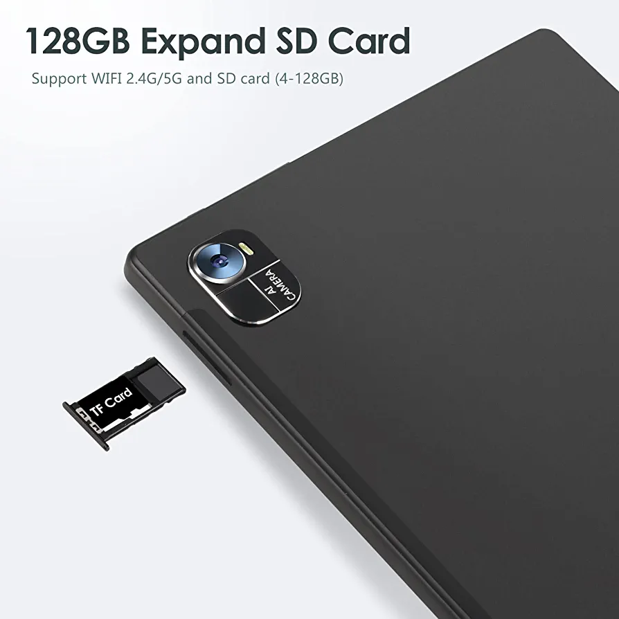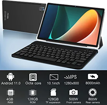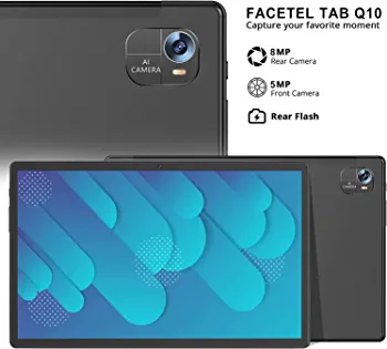 Introducing the FACETEL Android 11 tablet, equipped with an SC610 Octa-Core CPU, 4GB RAM, and 128GB ROM. The tablet features a 10-inch G+G HD IPS screen with a resolution of 1280×800 pixels, supporting 1280p video playback. It also has a dual camera with a front 5PM and rear 8PM, Bluetooth, FM, and WiFi positioning function support. The tablet comes with a 8000mAh battery, 2.4GHz+5GHz WI-FI, and interfaces such as Type-C, 3.5mm earphone jack, Micro SD card slot, and Snap Pin.