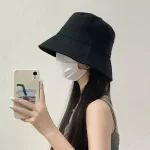 | nameOriginal | Black fisherman hat for women 2024 new spring and summer large head circumference showing face small sun protection bucket sun basin hat K |