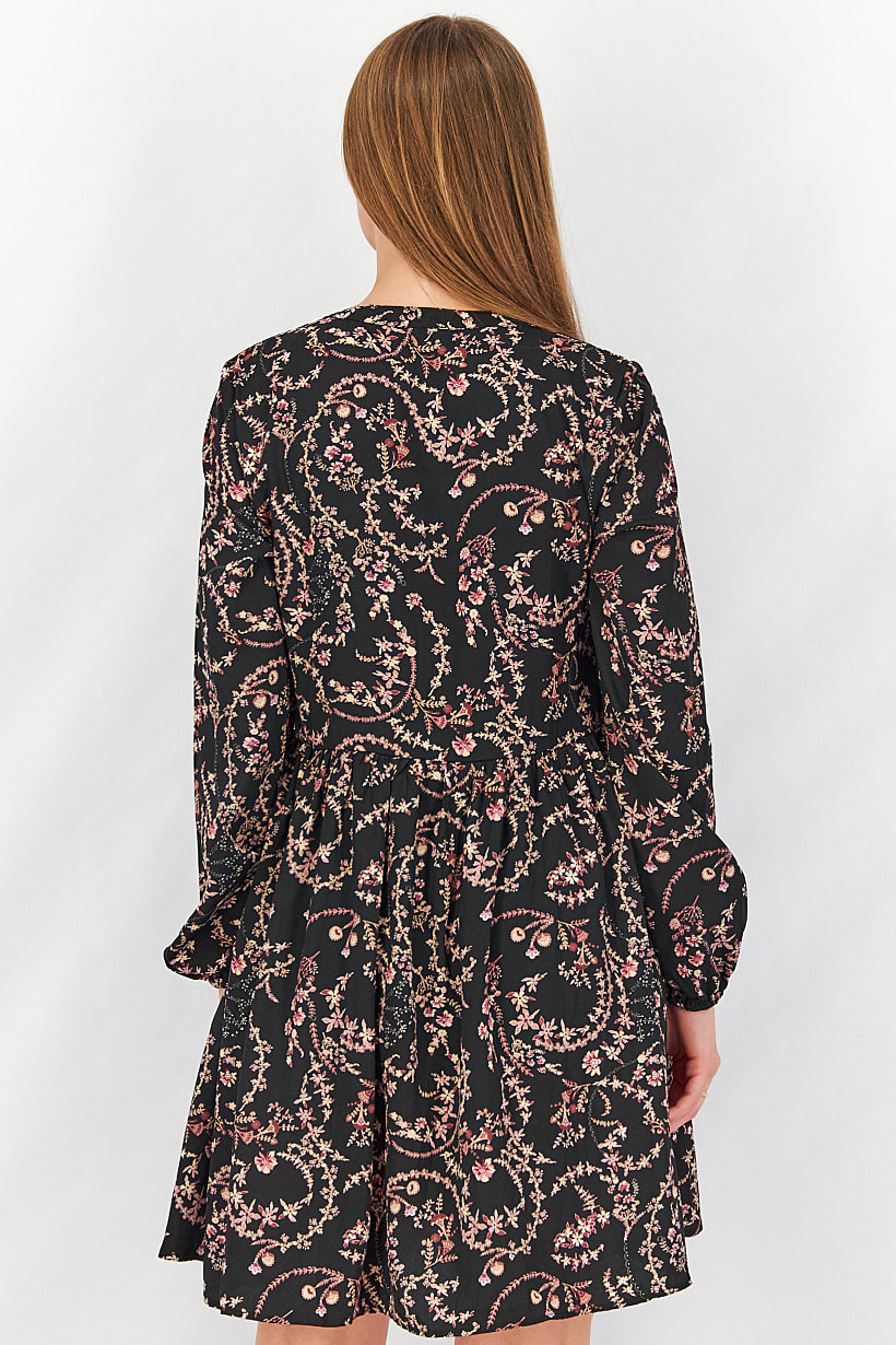 Black Floral Print Long Sleeve Mini Dress for Women.