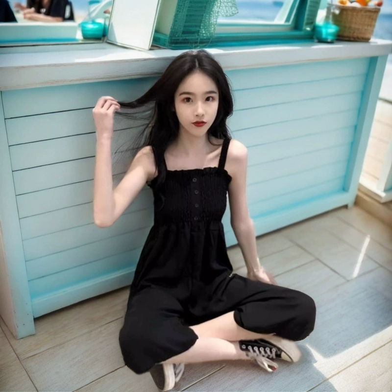 | nameOriginal | Black French petite suit jumpsuit with suspenders |