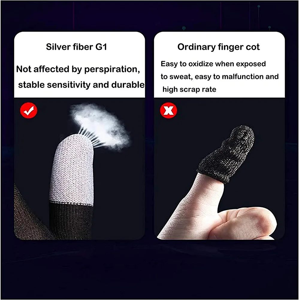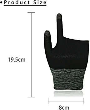 | nameOriginal | E-Sports Gaming Gloves, Gaming Finger Sleeves, Anti-Sweat Breathable, Thumb Sleeves for Highly Sensitive Nano-Silver Fiber Material + Nylon, for PUBG Mobile Phone Games Accessories (BLACK) |