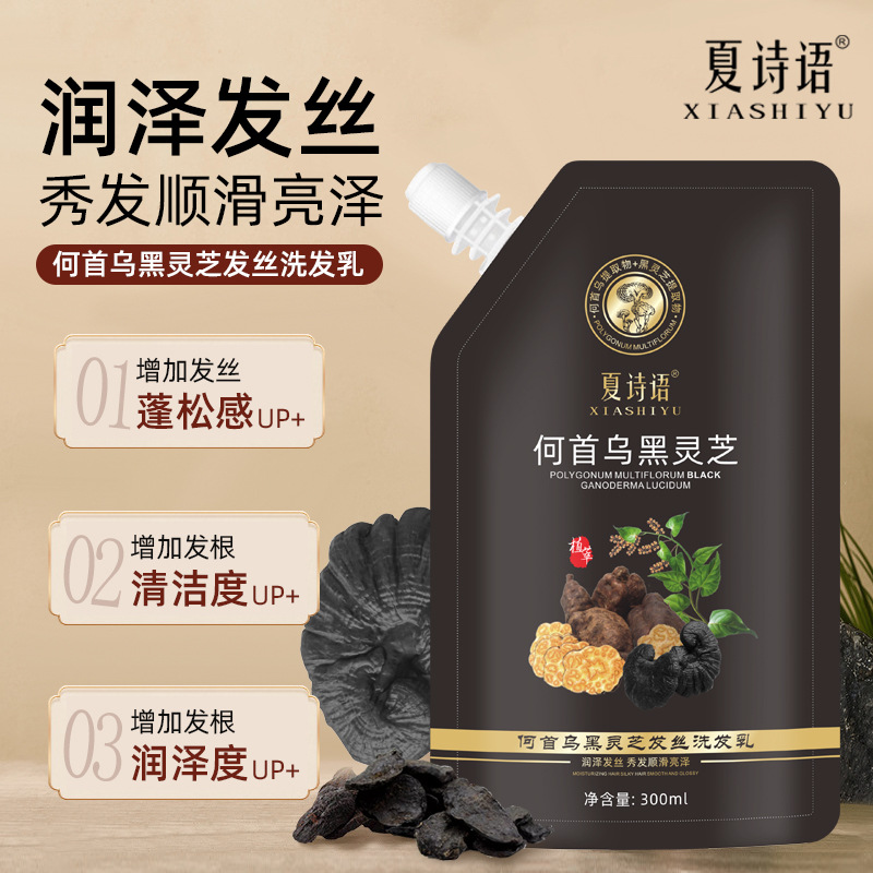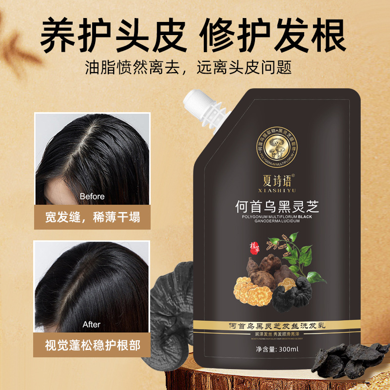 | nameOriginal | Black Ganoderma lucidum Polygonum multiflorum Shampoo Hair Care Nourishing Soft Silky Light Fluffy Shampoo a generation of hair |