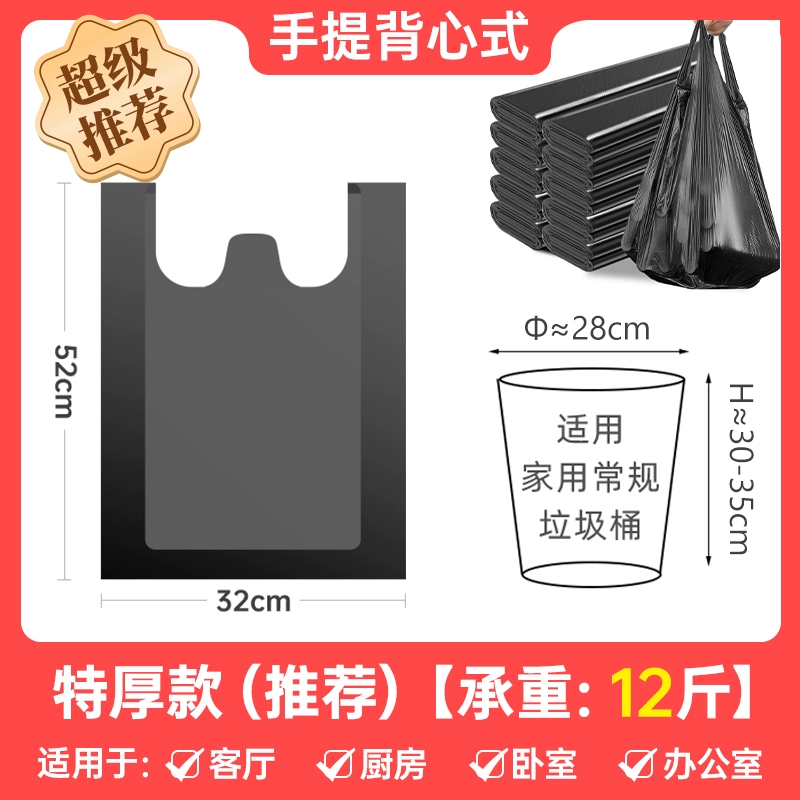 | nameOriginal | Black garbage bag household thickened large kitchen portable vest bag dormitory plastic bag wholesale disposable |