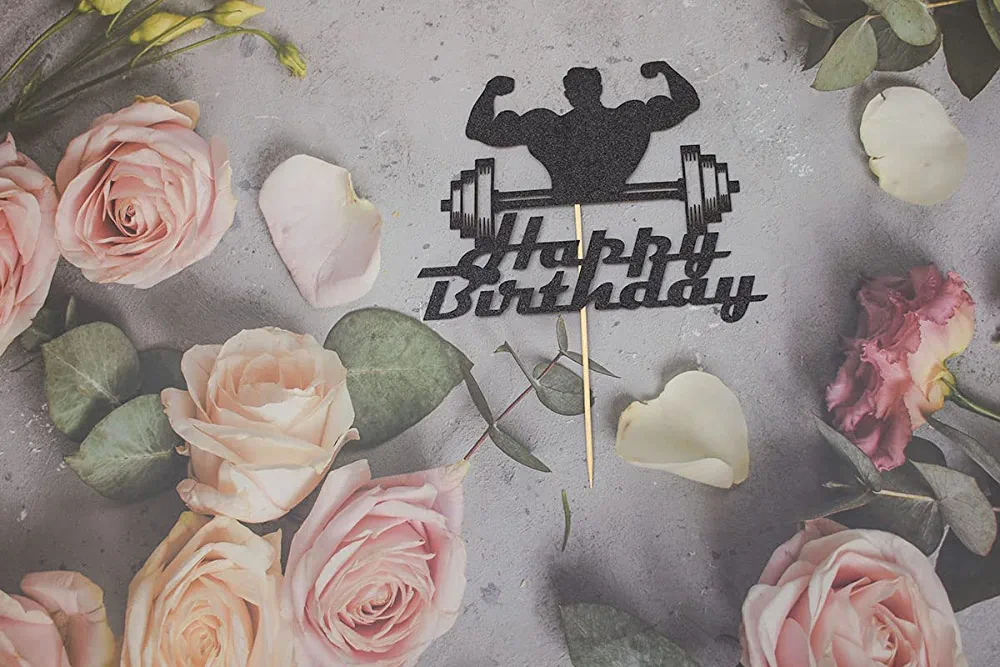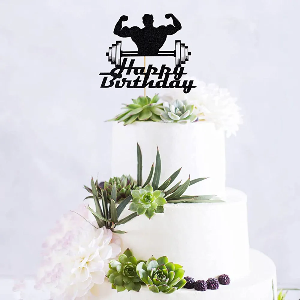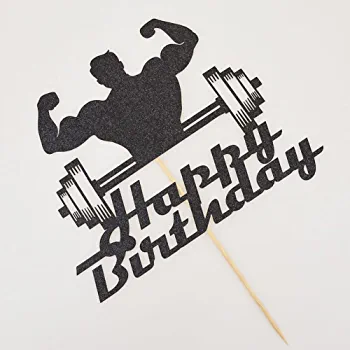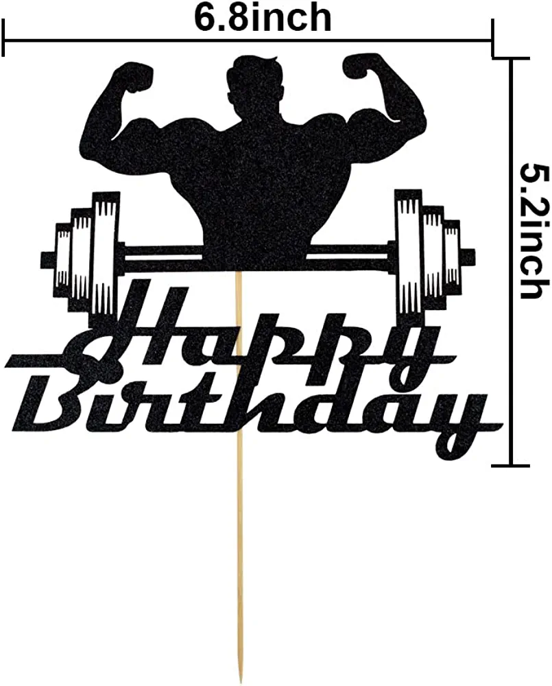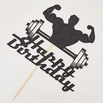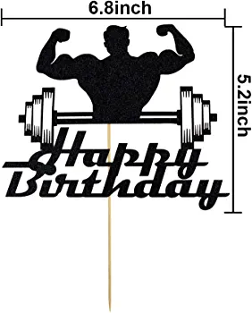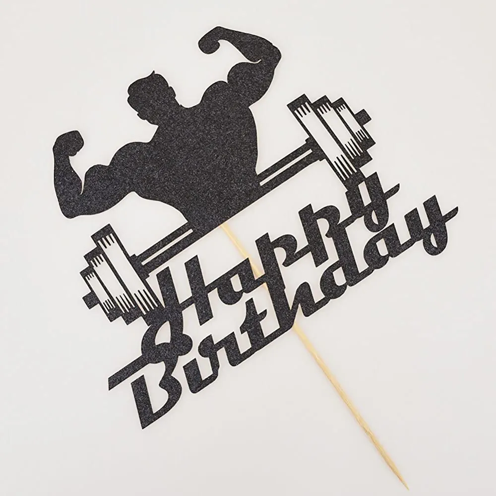 | nameOriginal | Body Builder Happy Birthday Cake Topper, Gym Fitness Theme Cake Decoration for Men Boy, Athlete Enthusiast Party Decor, Black Glitter |