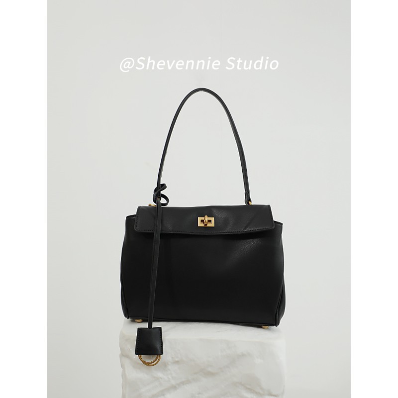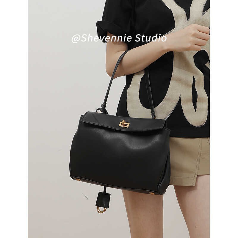 | nameOriginal | Black Gold Button Cowhide Crossbody Large Capacity Commuter Casual Kelly Bag Shoulder Bag Handbag All-match Women's Bag |