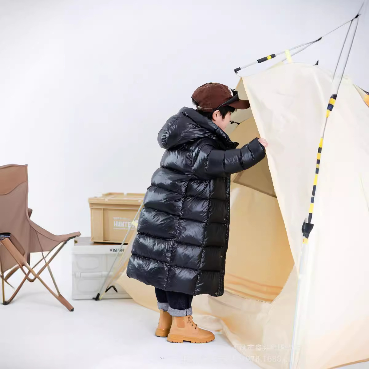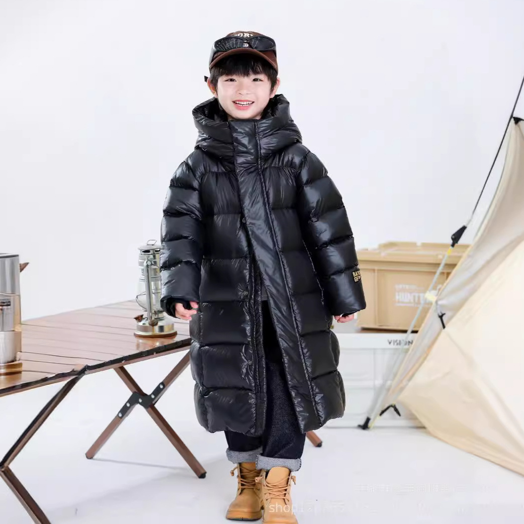 Black gold children's down jacket 2023 winter new boys and girls winter hooded thick bread coat factory outlet