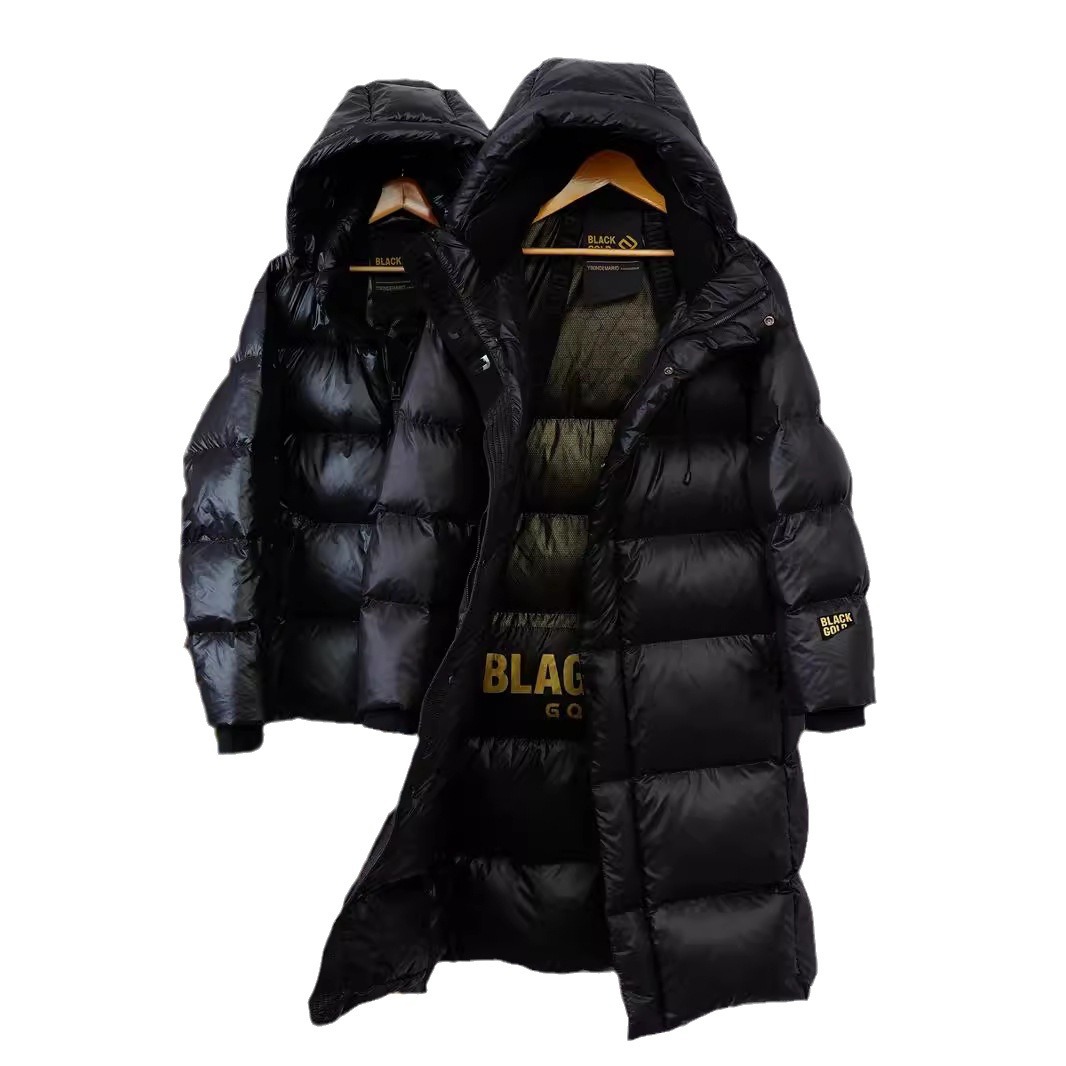 | nameOriginal | Black Gold Down Jacket Men's Very Cold Long 2024 New High-end Eight-grid Goose Down Knee Thickened Hooded Couple Winter |