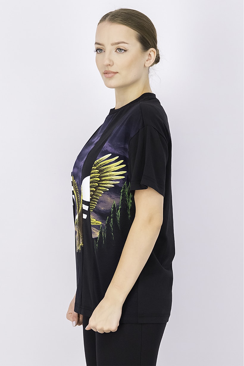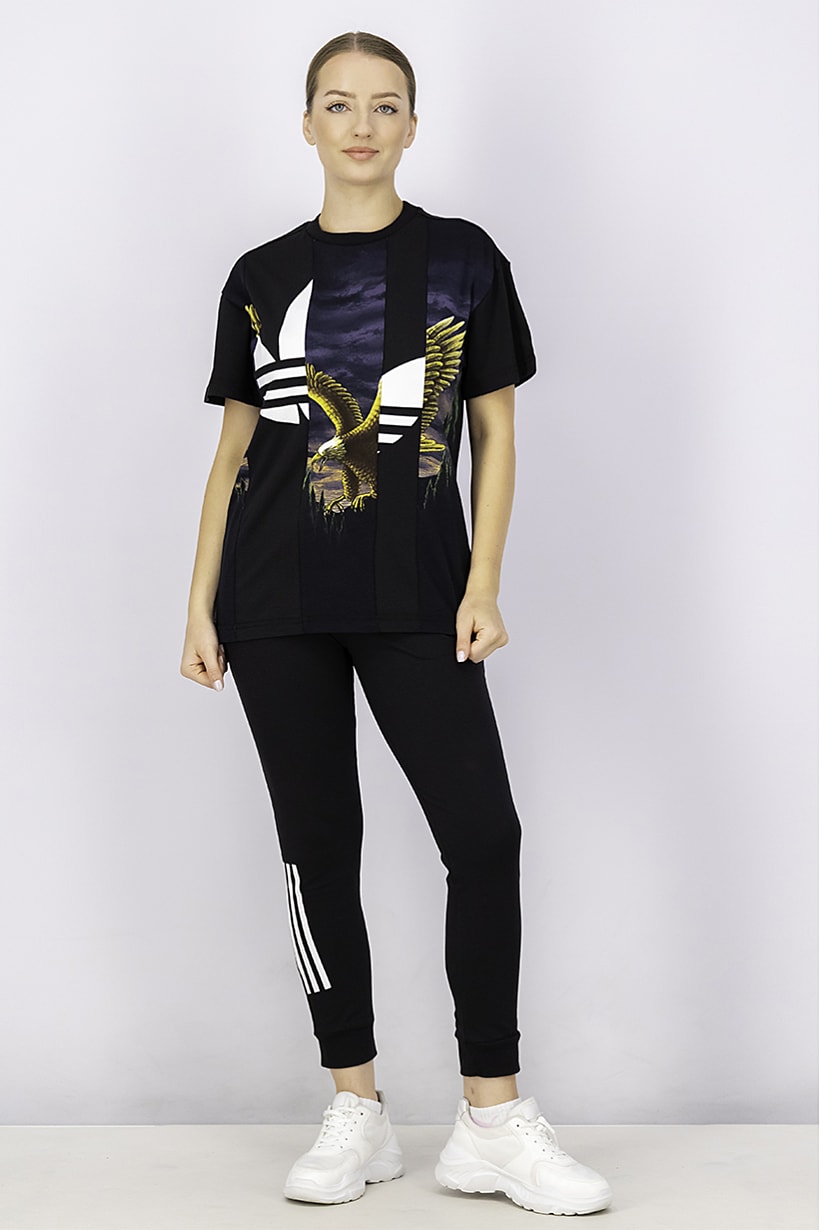 | descriptionOriginal | Bottom Hem : Straight, Care : Machine washable, Fit : Sportswear Fit, Ideal For : Women, Size shown : Japan, Thickness : Medium, Type of Sport : Outdoors, Types of Hem : Straight hem, Types of Neckline & Collar : Crew neckline, Types of Sleeve : Short sleeve, Disclaimer : Product color may slightly vary due to photographic lighting sources or your monitor settings., Fabrics : 100% Cotton, Pattern & Print : Graphic print, Sportswear Type : T-Shirt, Types of Closures : Pullover, Color Family : Black, |