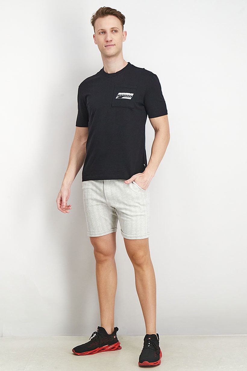 Black Graphic Pocket T-Shirt with Short Sleeves and Crew Neck for Men’s Sportswear.
