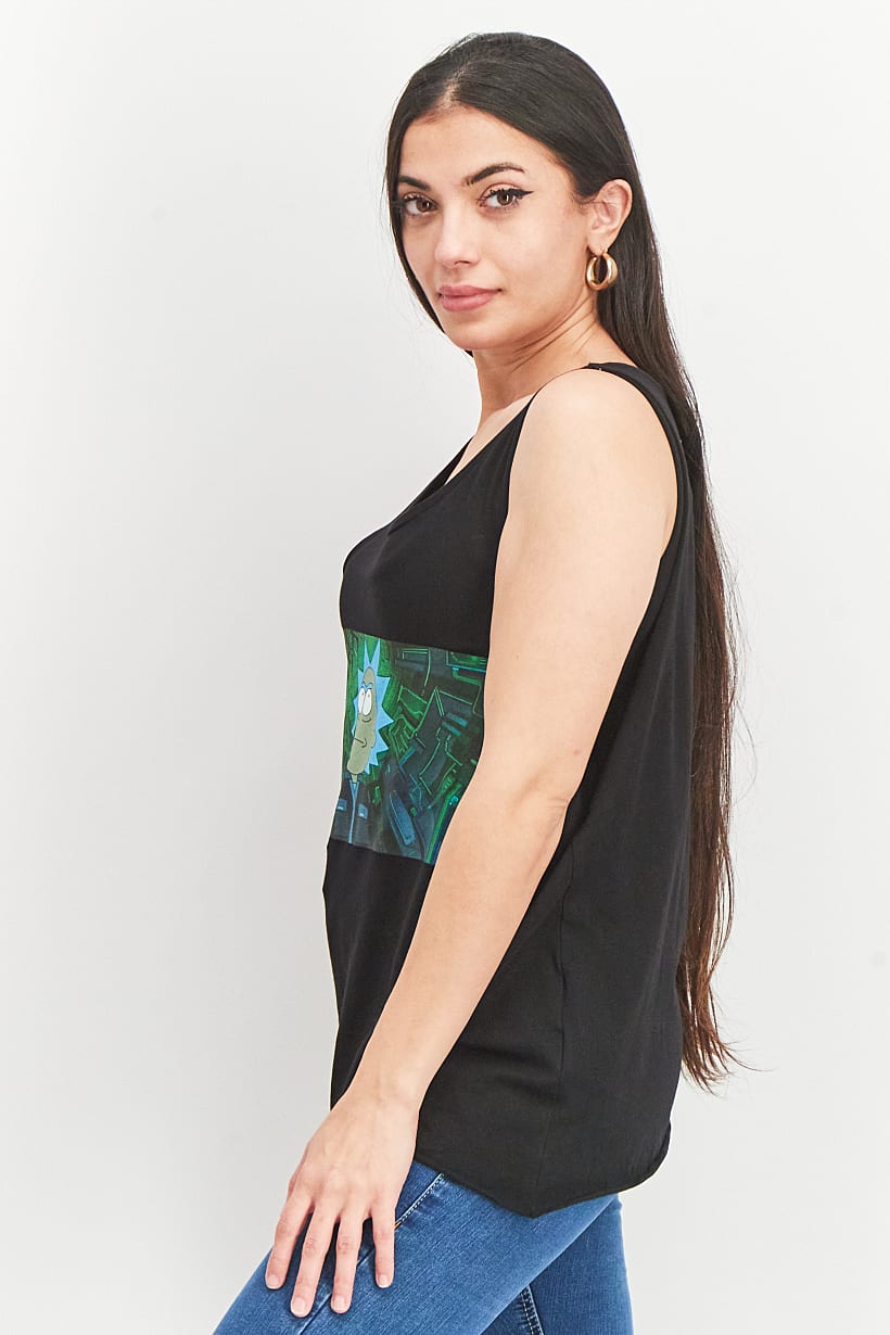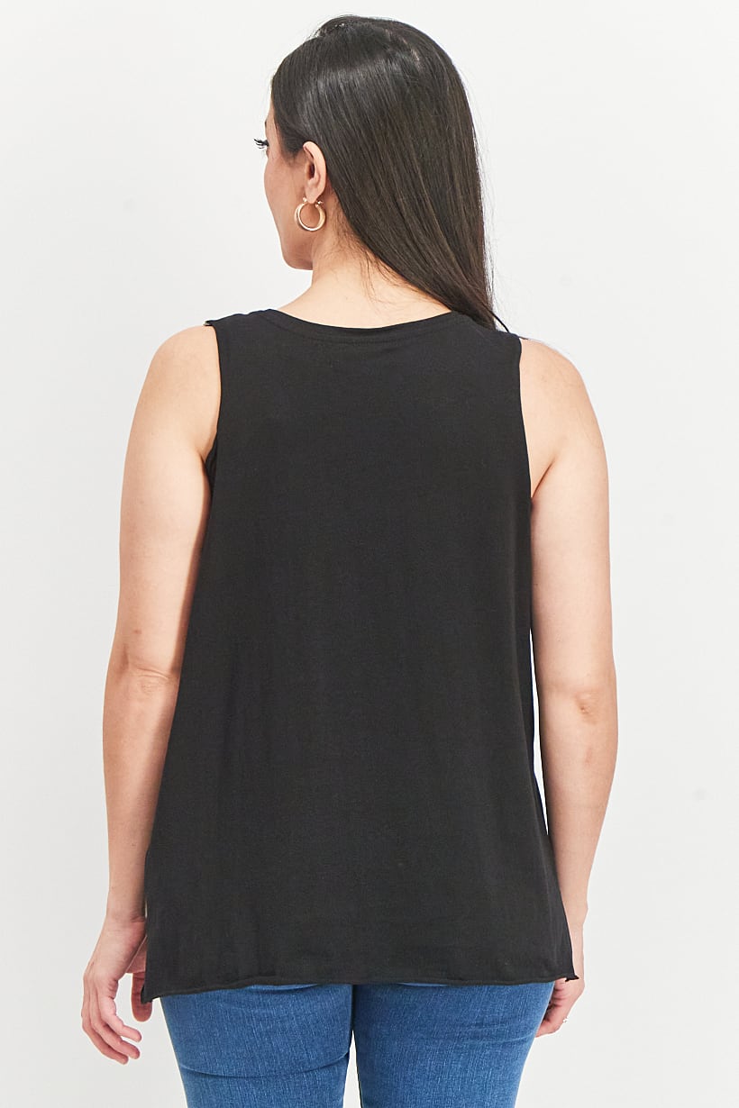 Black Graphic Print Sleeveless Tank Top for Women with Round Neck.