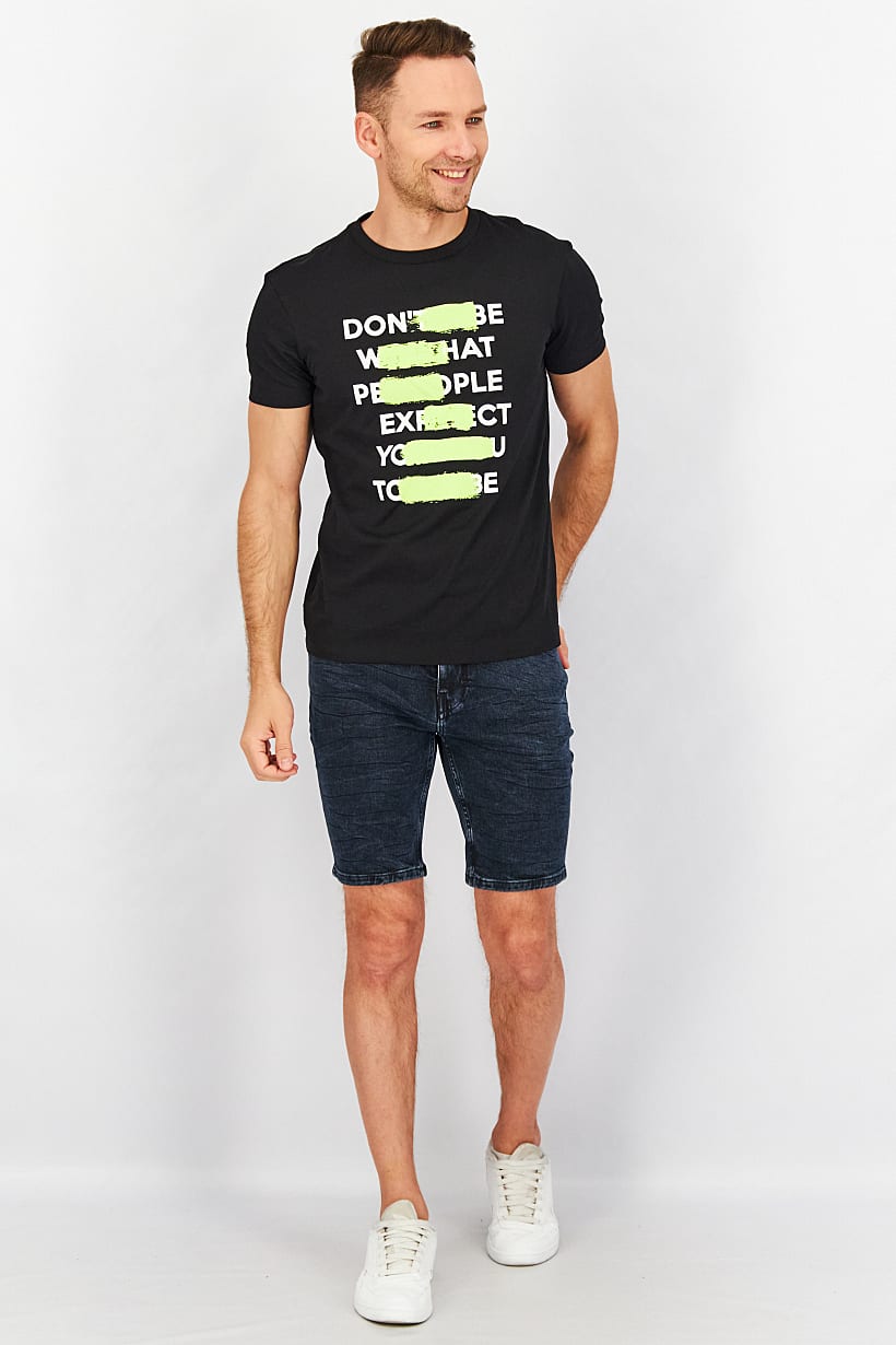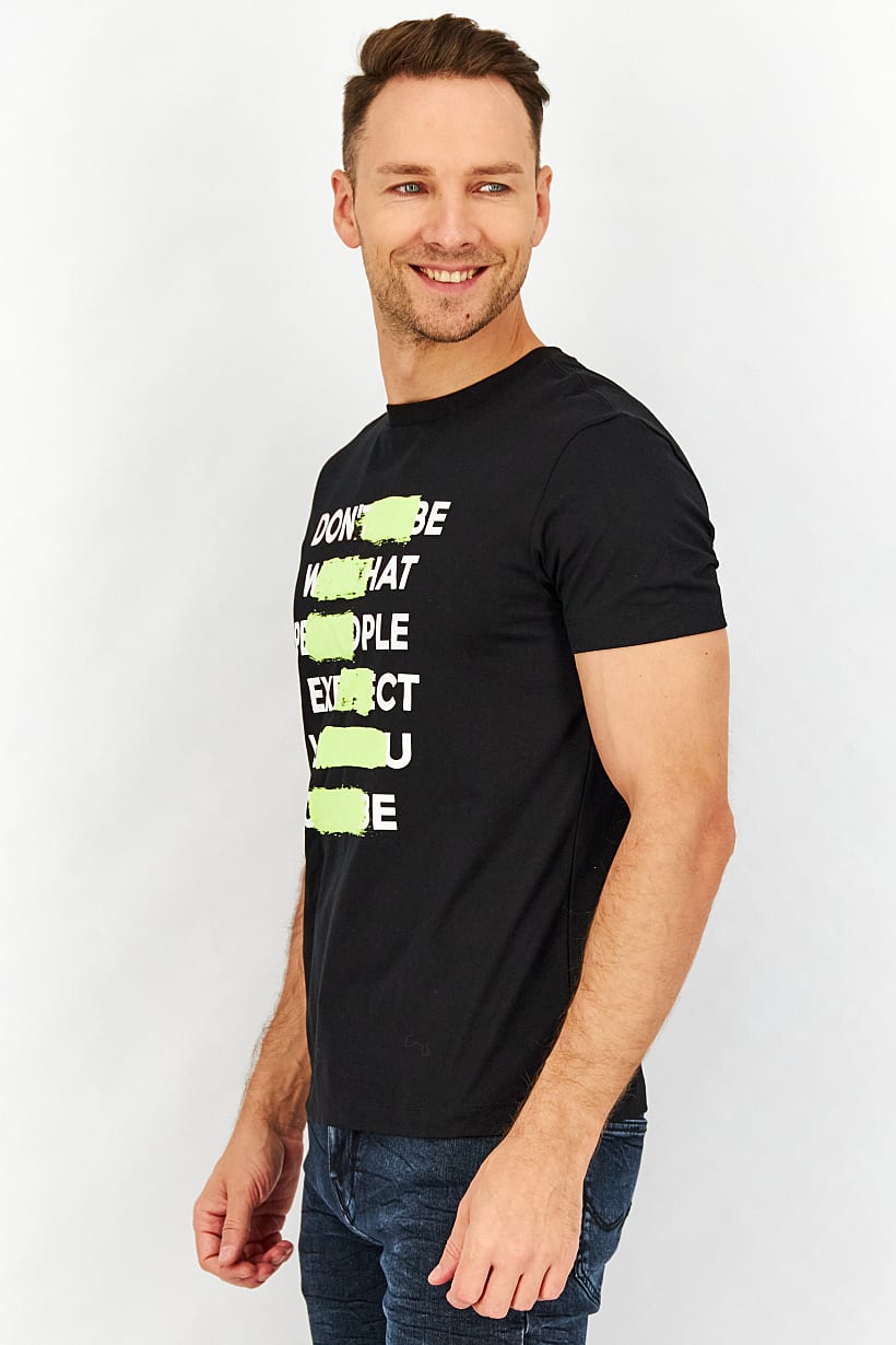 Black Graphic T-Shirt for Men with Regular Fit and Short Sleeves.