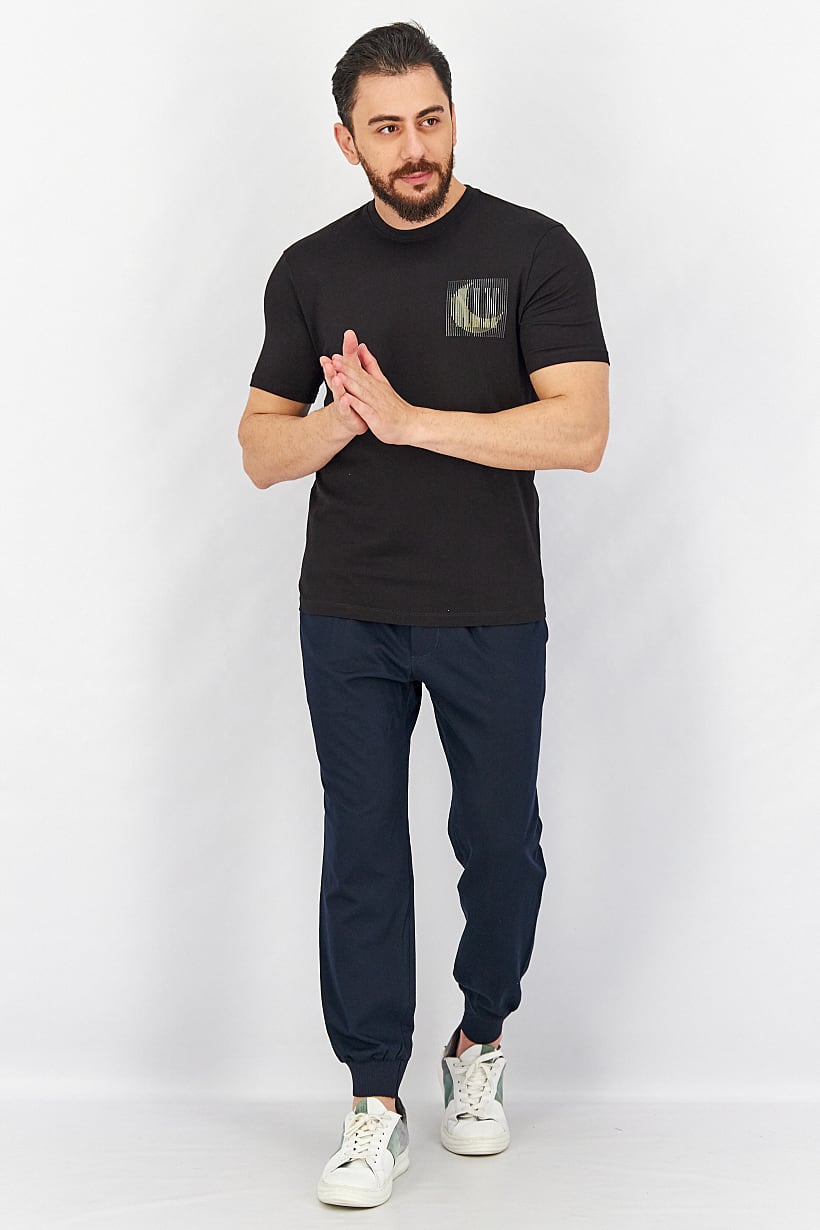 Black Graphic T-Shirt with Short Sleeves for Men.