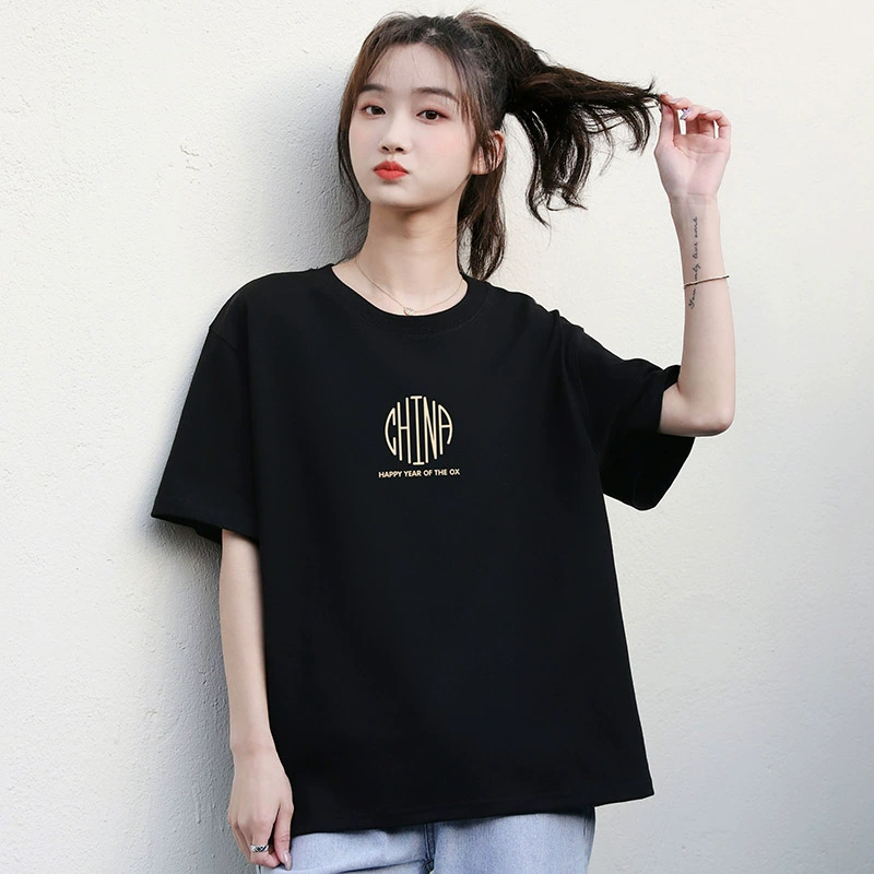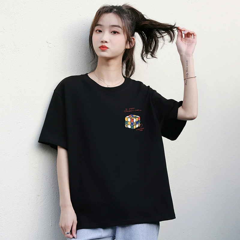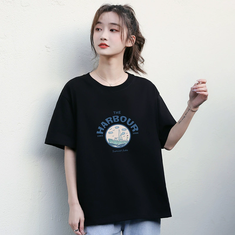 | nameOriginal | Black half-sleeve loose Korean style printed simple T-shirt |