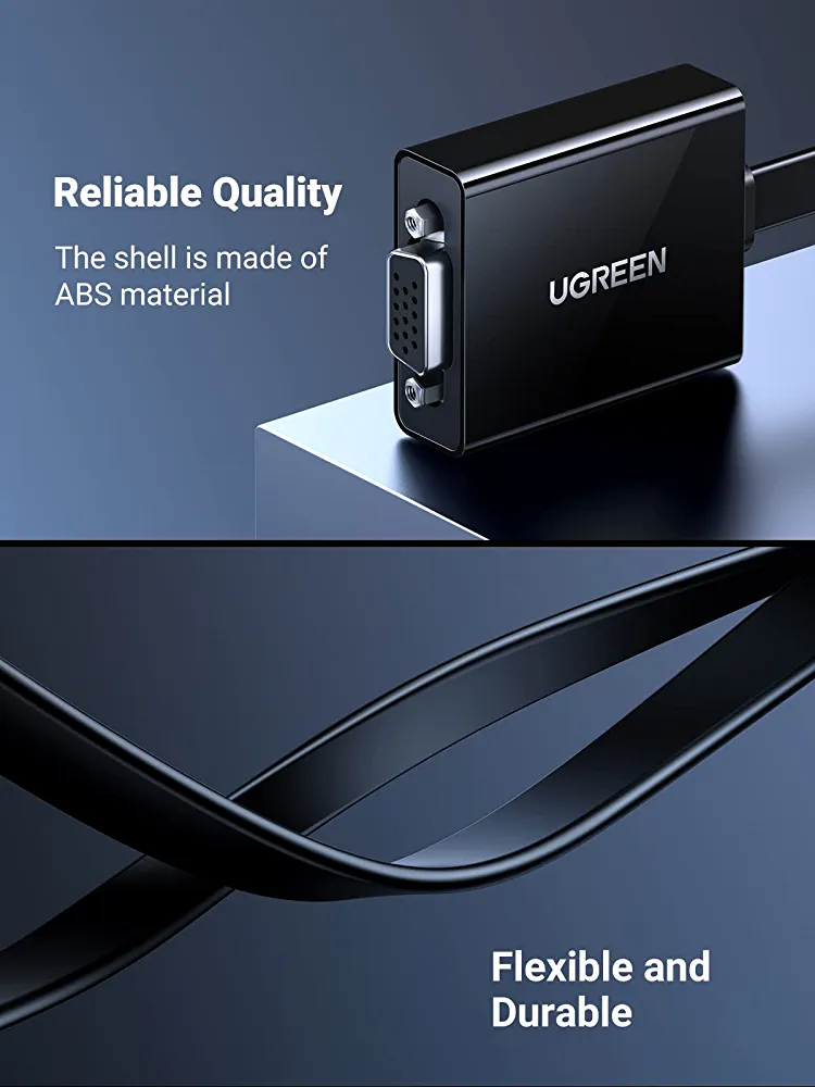| nameOriginal | UGREEN Active HDMI to VGA Adapter Converter with 3.5mm Audio Jack up to 1080P Compatible for PC, Laptop, Ultrabook, Raspberry Pi, Chromebook – Black |