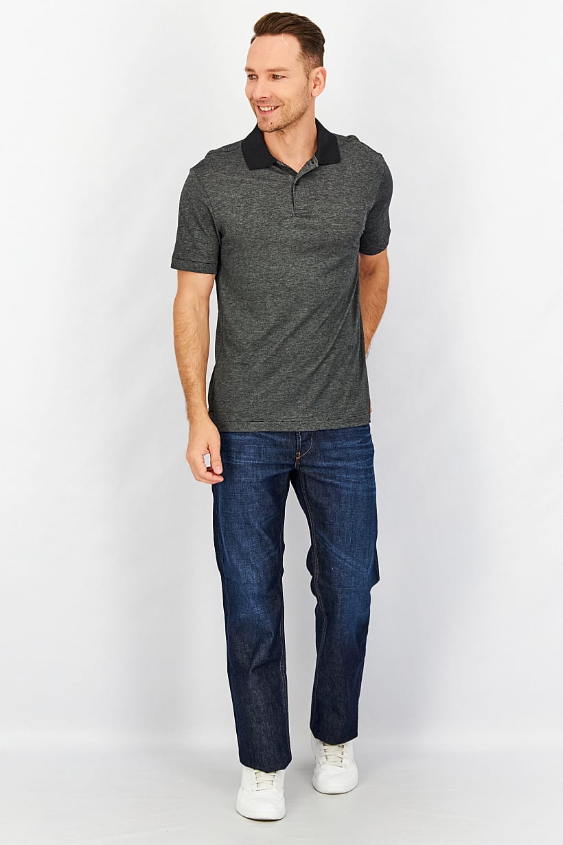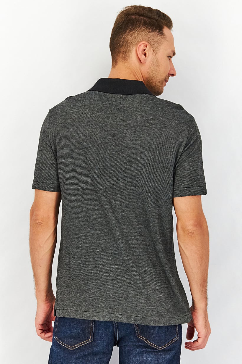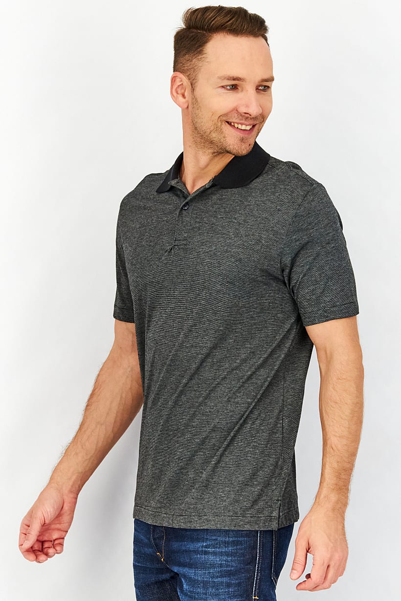 Black Heather Polo Shirt for Men with Regular Fit and Short Sleeves.