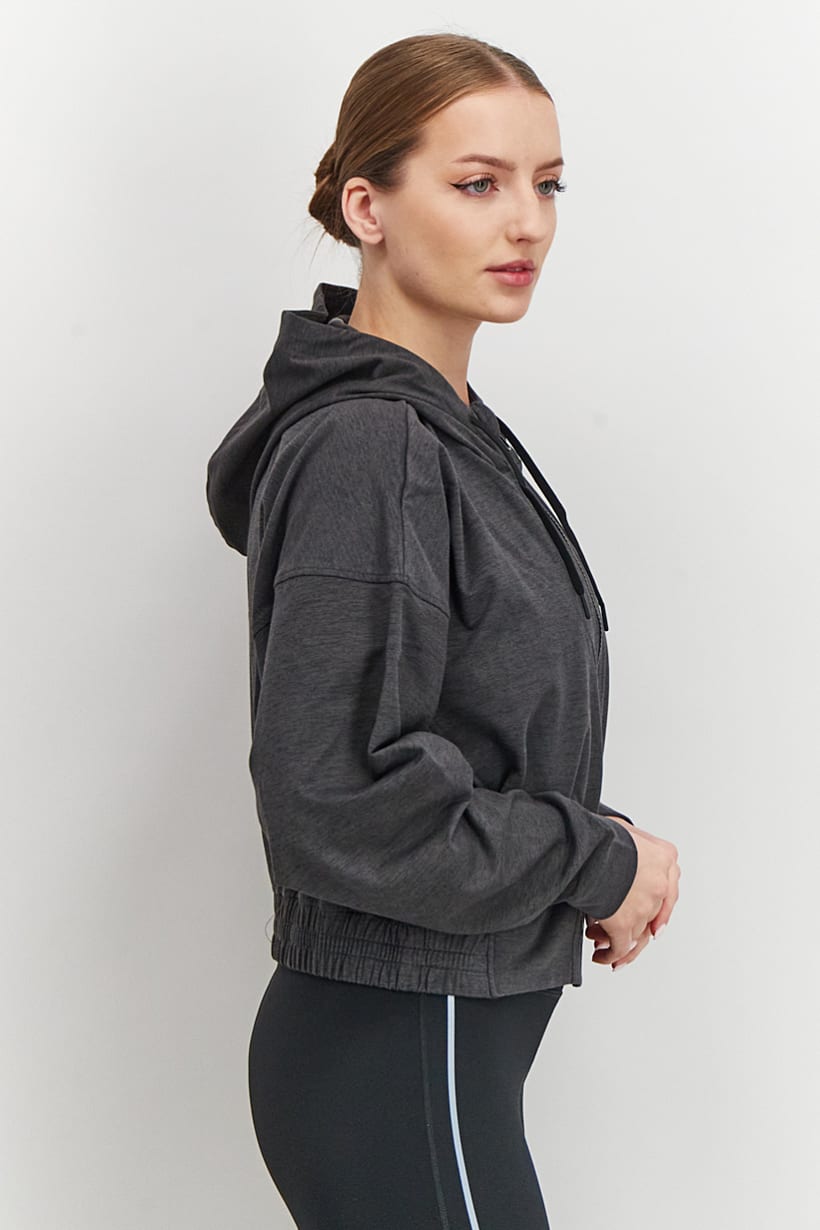Women Relaxed Fit Full Zip Hooded Training Jacket, Black Heather
