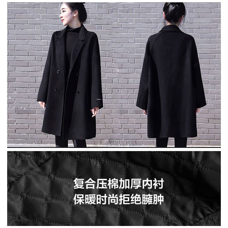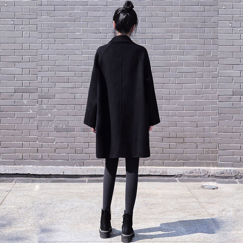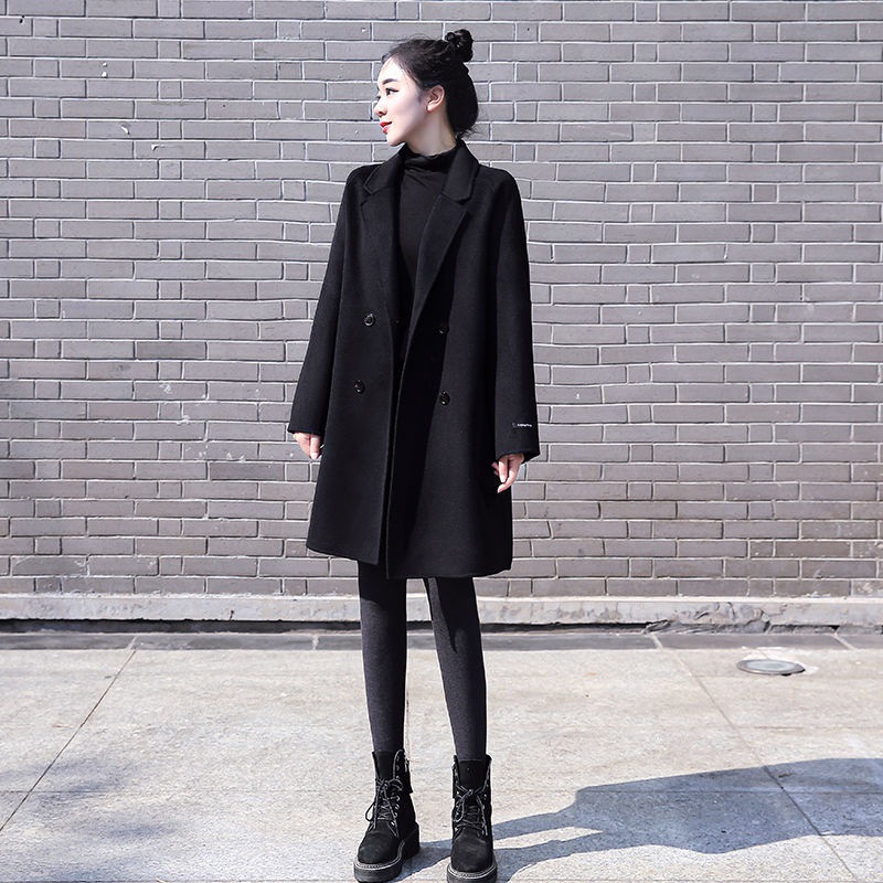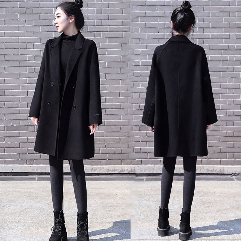 Black Hepburn Style plus size Woolen Coat Women’s Mid-length 2024 New Loose Slim Wool Coat for Autumn and Winter