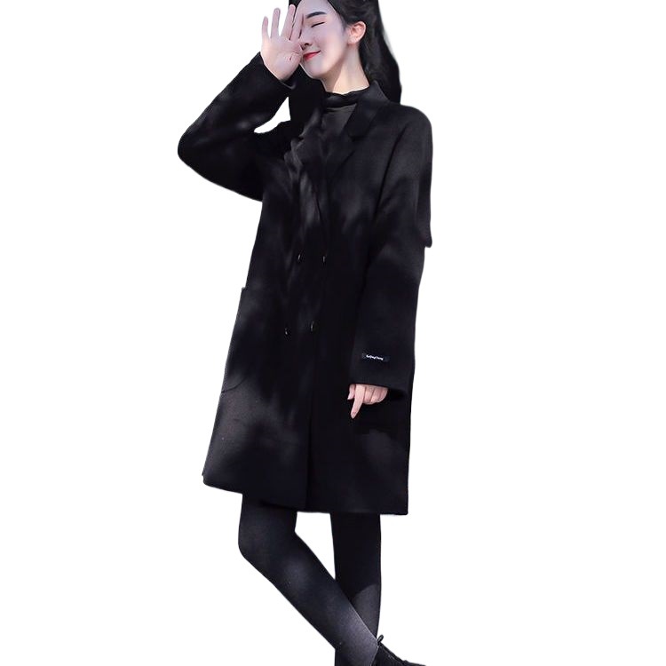 Black Hepburn Style plus size Woolen Coat Women's Mid-length 2024 New Loose Slim Wool Coat for Autumn and Winter
