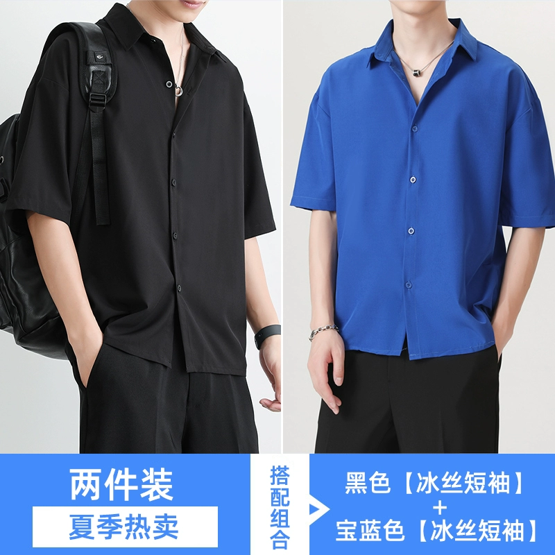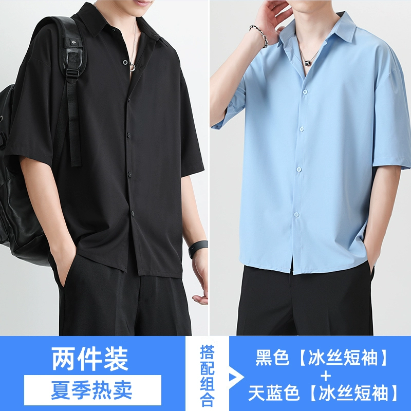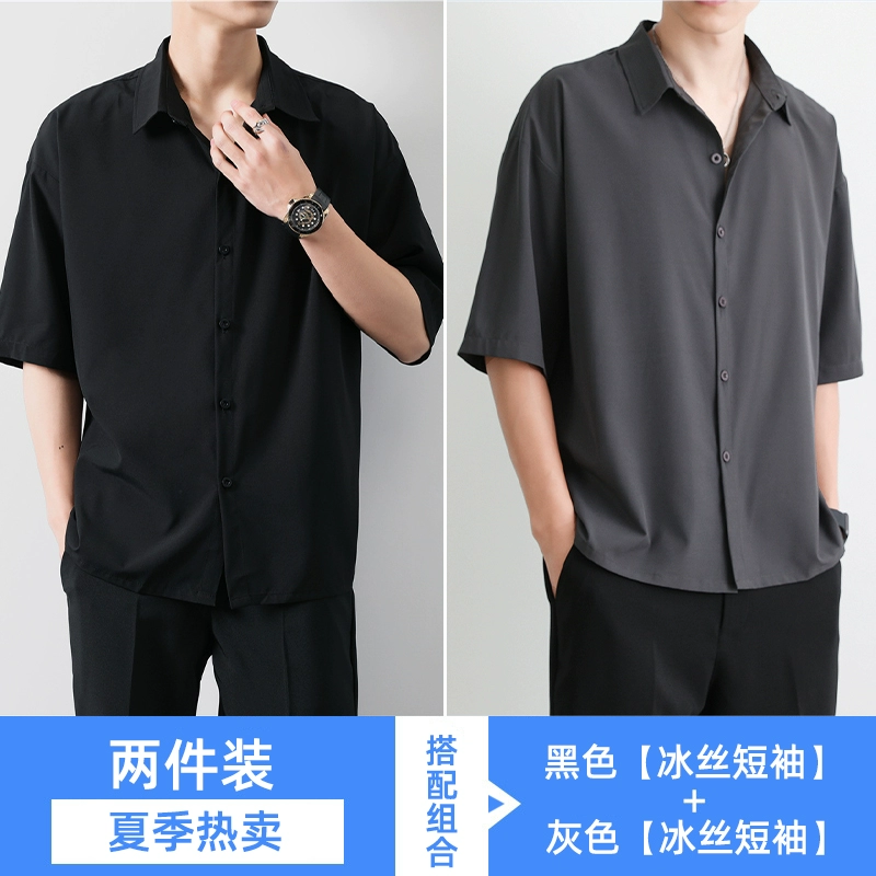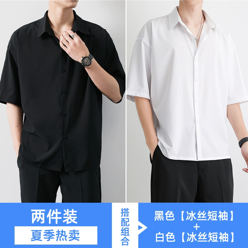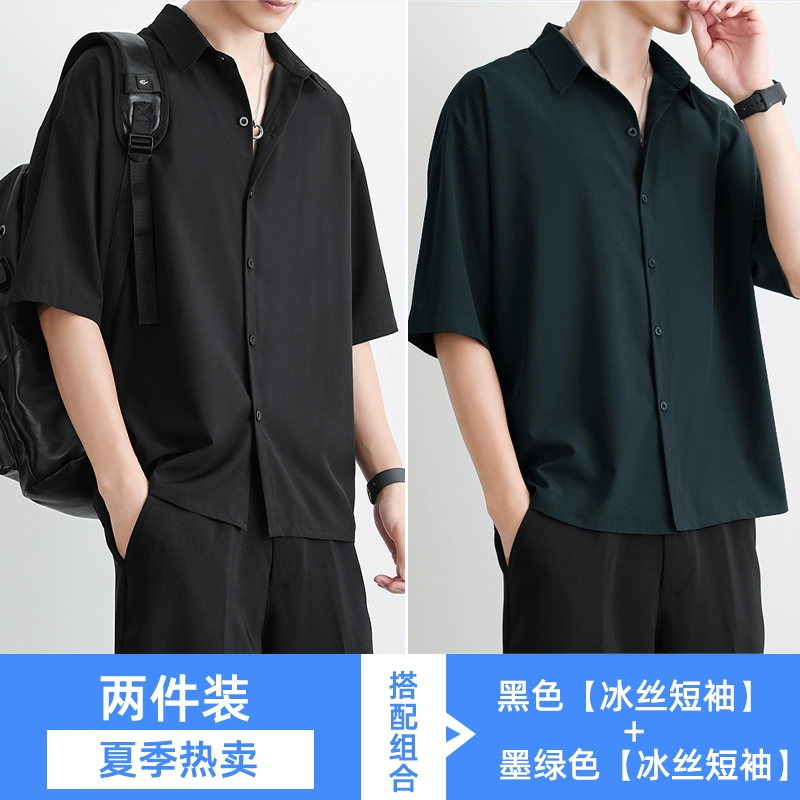 | nameOriginal | Black high-end casual ice silk short-sleeved shirt |