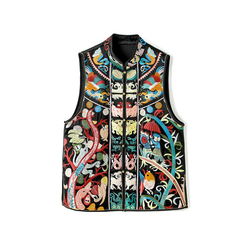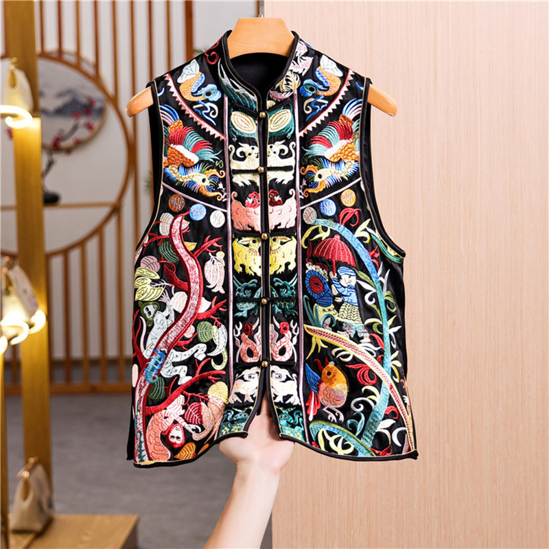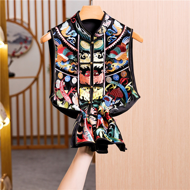 Black High-end Sense Heavy Industry Embroidered Guofeng Acetic Vest Vest 2024 Summer New Tang Suit Retro Top