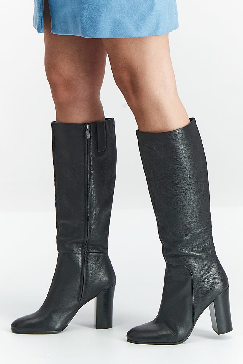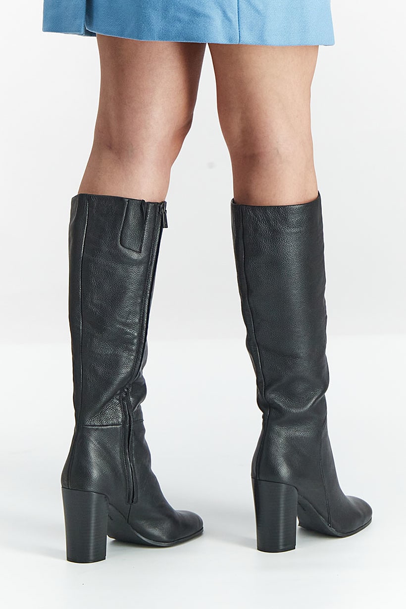 Style : Knee-length boot, Ideal For : Women, Disclaimer : Product color may slightly vary due to photographic lighting sources or your monitor settings., Heel Height : 4" / 10 cm, Shoe Closure : Zipper closure, Heel Style : Block heel, Toe Style : Round toe, Sole Material : Synthetic sole, Shoe Material : Synthetic Leather, Color Family : Black, Occasion : Partywear,