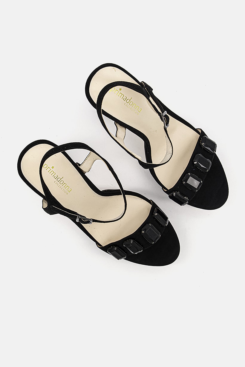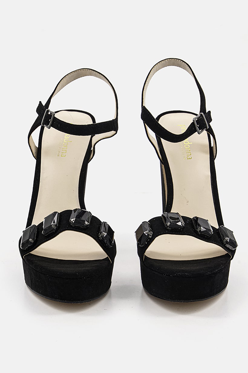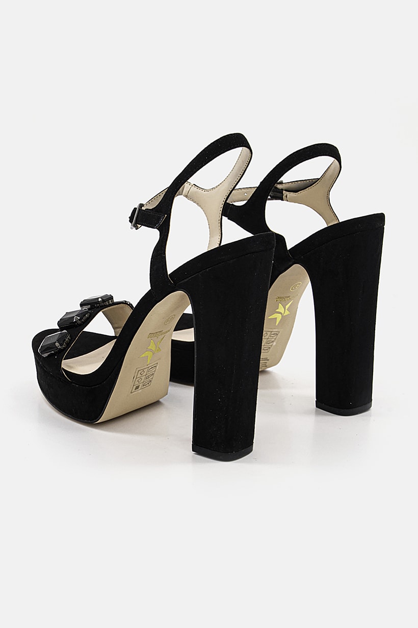 | descriptionOriginal | Heel Height : 5.25" / 13.3 cm, Heel Style : Chunky heel, Ideal For : Women, Shoe Closure : Adjustable buckle closure, Sole Material : Synthetic sole, Toe Style : Open toe, Disclaimer : Product color may slightly vary due to photographic lighting sources or your monitor settings., Occasion : Casual, Shoe Material : Suede , Color Family : Black,  |