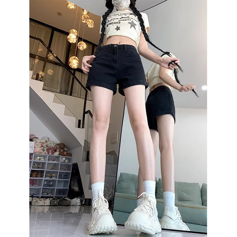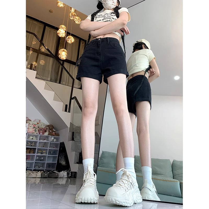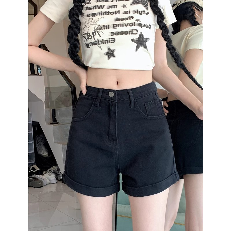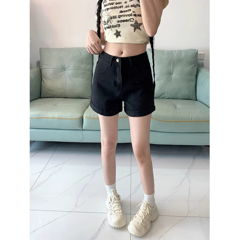 | nameOriginal | Black High Waist Curl Denim Shorts Women's Summer plus size chubby girl Slimming Pear Shape Wide Leg A- Shaped Hot Pants |