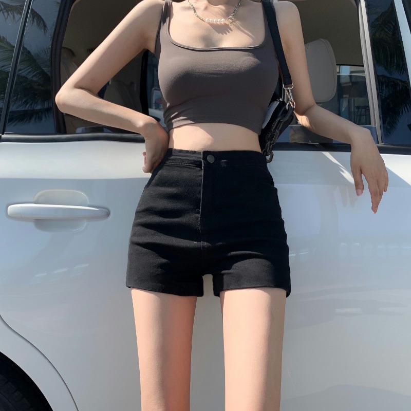 | nameOriginal | Black High Waist Denim Shorts Women's Clothing [Elastic] Sexy Slimming Loose A- word Wide Leg Pants for Spring, Autumn and Summer |