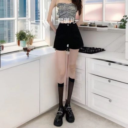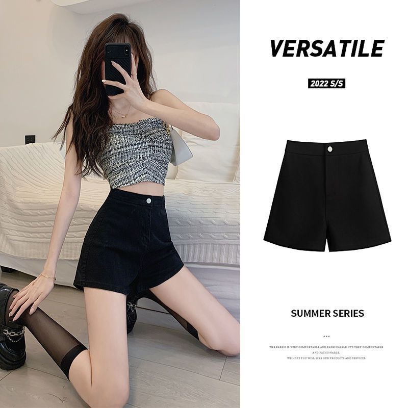 | nameOriginal | Black high waist stretch Denim shorts for women 2023 new slimming spring and summer outer wear hot girl A- line pants ins |