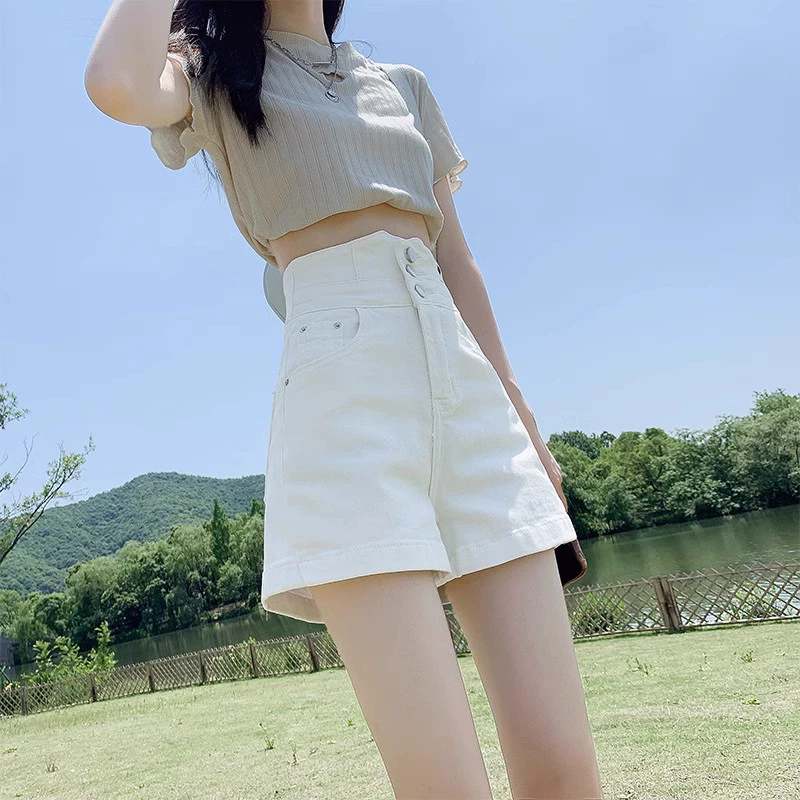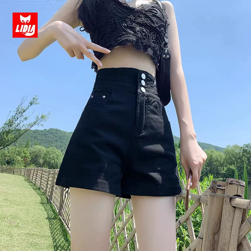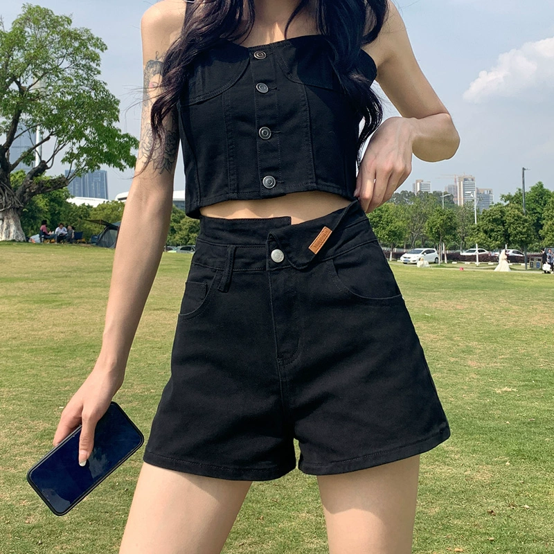 | nameOriginal | Black high-waisted thin A-line versatile denim shorts |