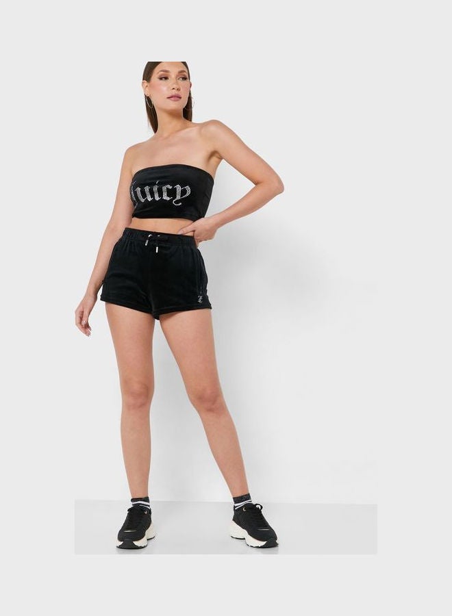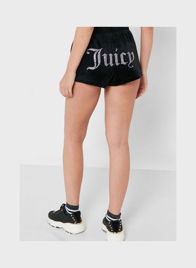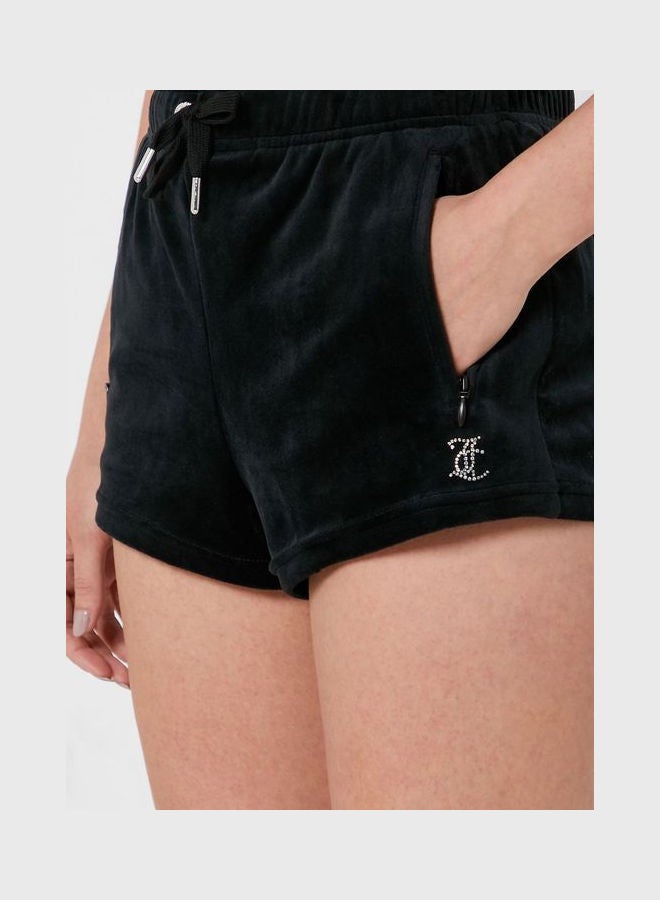 Achieving the ideal blend of sophistication and comfort, these shorts are a must-have. The fabric is a smooth and cozy blend of polyester, while the waistband is elasticated and features adjustable drawstrings. The shorts also come with dual side zipper pockets and are adorned with the iconic Diamante Juicy Couture signature branding. Please note that each item is sold separately.