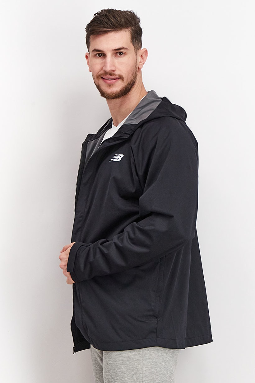 Men Sports Fit Brand Logo Hooded Rain Jacket, Black