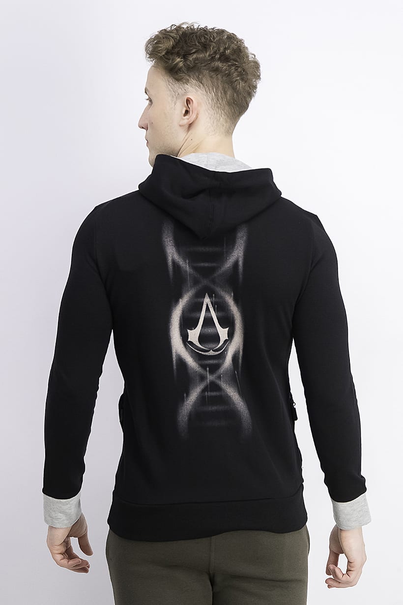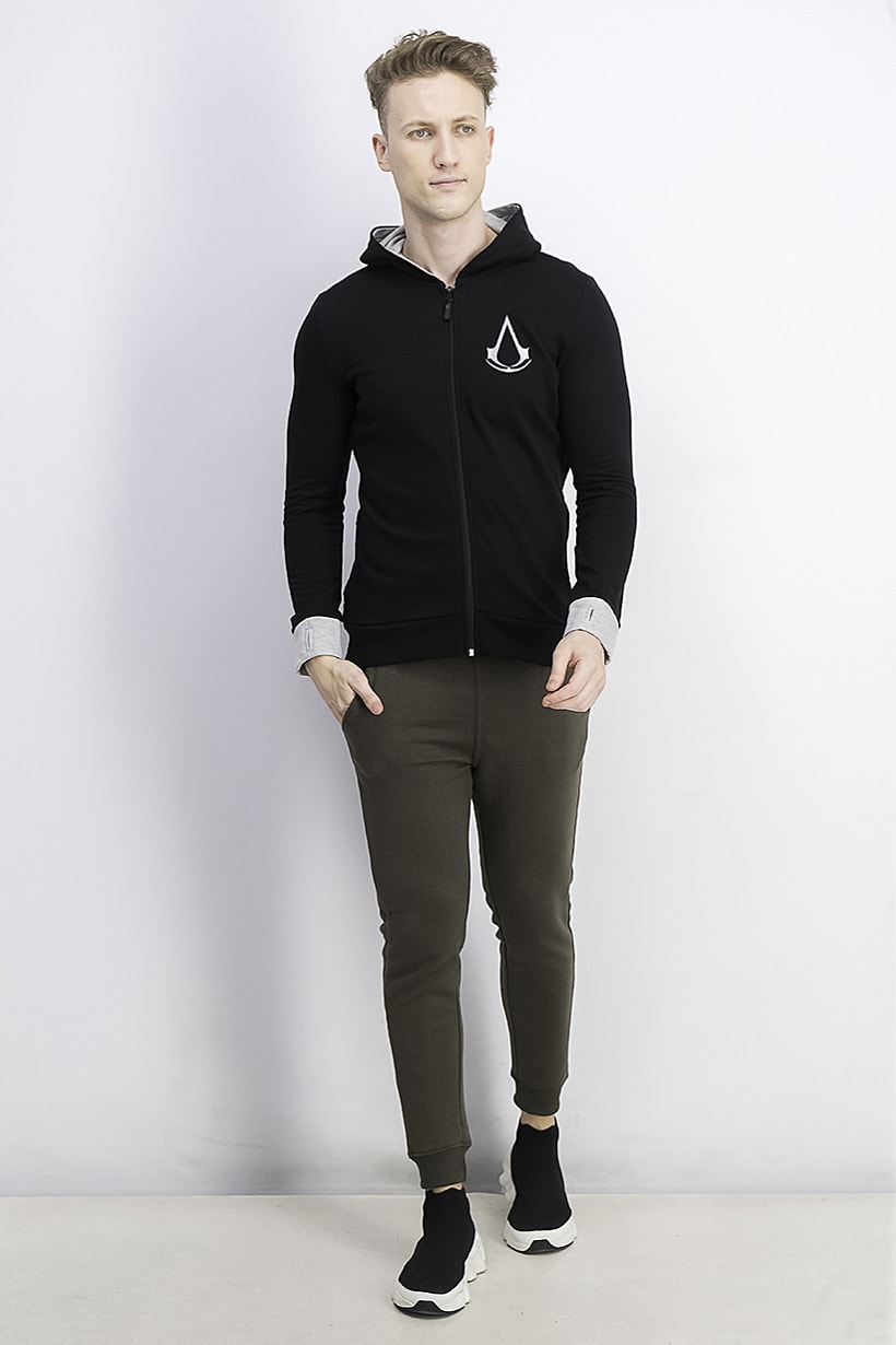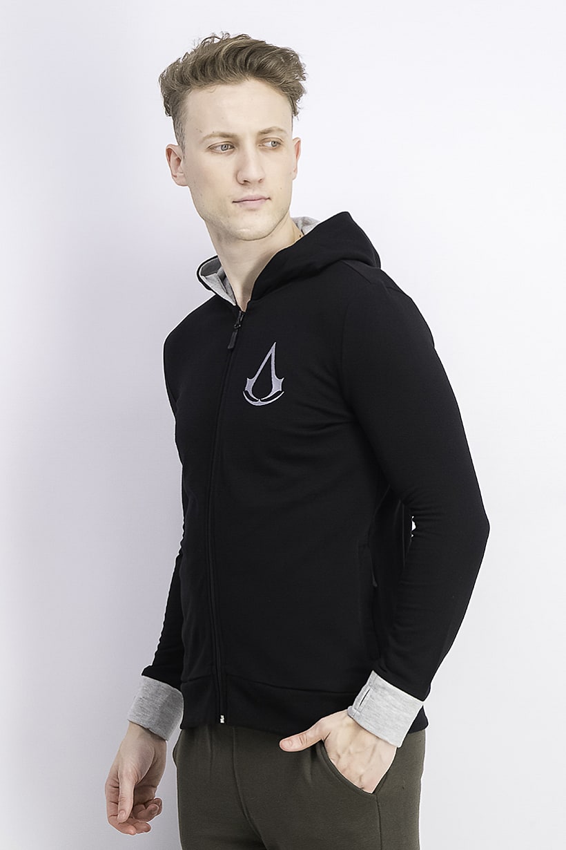 Black Hoodie with Embroidered Assassins Creed Logo for Men.