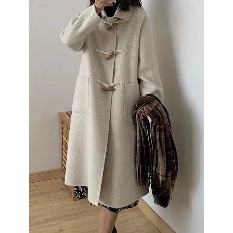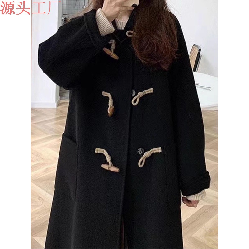 | nameOriginal | Black horn buckle mid-length woolen coat for women 2024 autumn and winter new small woolen coat Hepburn style |