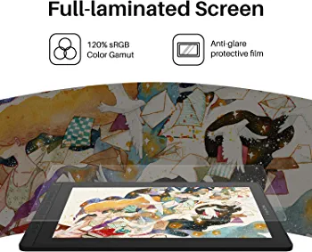 The laminated technique combines glass seamlessly with the screen to minimize the parallax. Besides, the anti-glare protective film helps to keep your screen clear and transparent even under bright light. You can connect your computer, laptop, mac, or even Android devices to Kamvas 16 (2021) via our 3-in-1 cable or USB-C to USB-C cable, which can help you get rid of the mess and bring you a tidy working space.