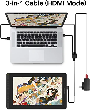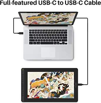 The Kamvas 16(2021) comes with 2 USB-C ports that support both a 3-in-1 USB-C connection (HDMI Signal) and a full-featured Type-C connection (DP Signal). For the 3-in-1 USB-C cable, your computer needs to have HDMI and USB ports available for the connection. If not, you need an adapter to convert for the connection. For the full-featured Type-C cable, it is included in the package content and supports Type-C to Type-C connection. An extra power supply is needed, and the type-c port of your PC or Android device needs to support USB3.1 GEN1 data transfer protocol and DP1.2.