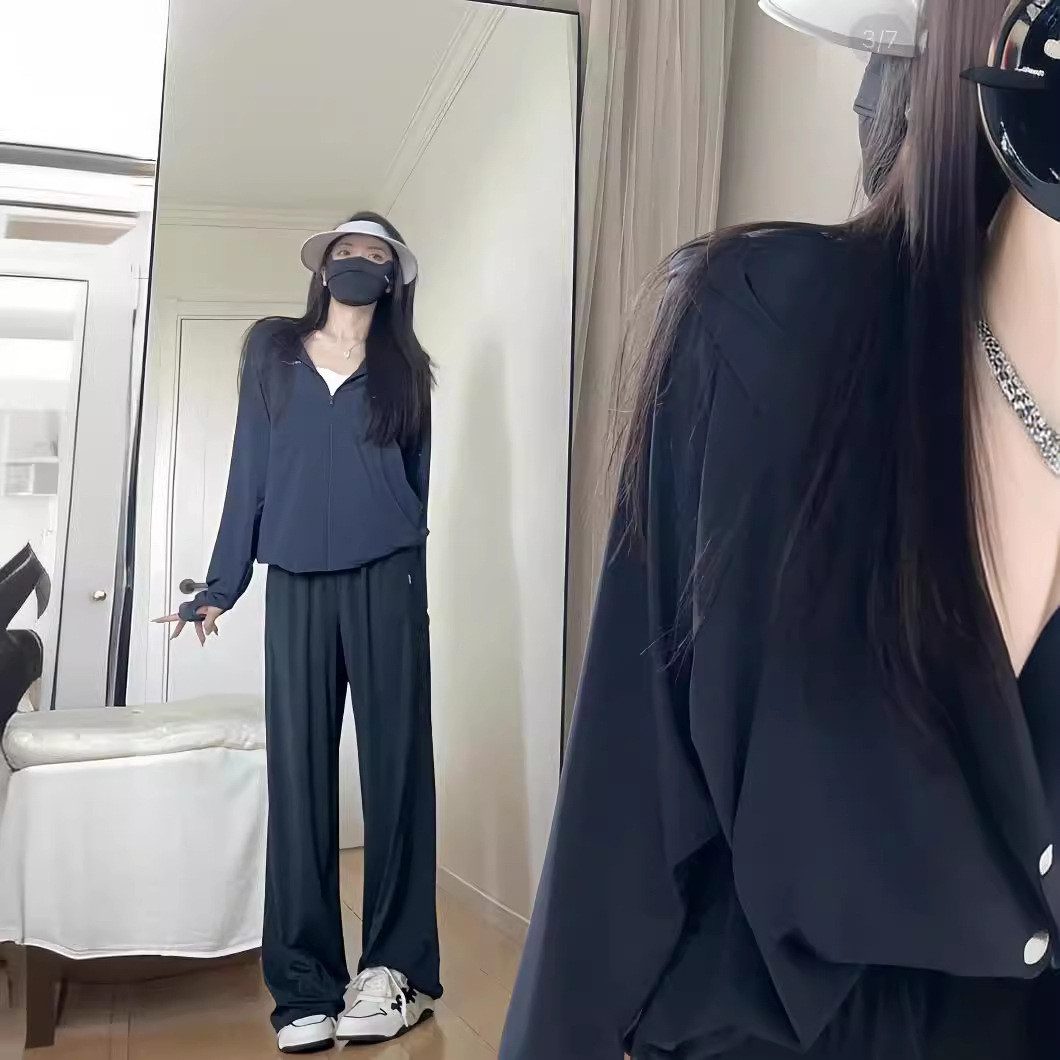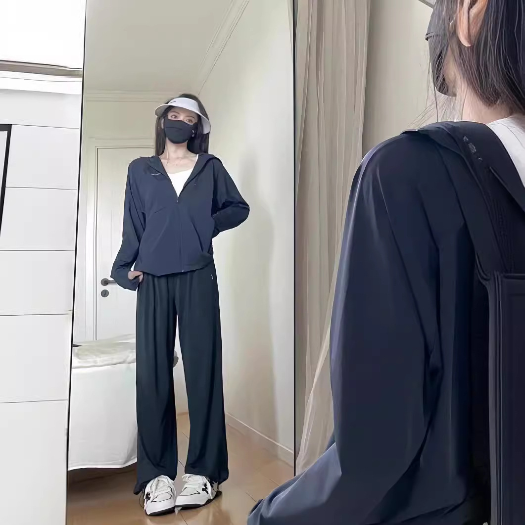 | nameOriginal | Black Ice Silk Sunscreen Casual Sportswear suit Women's Summer Lightweight UV-resistant Breathable Hooded Two-piece Set |