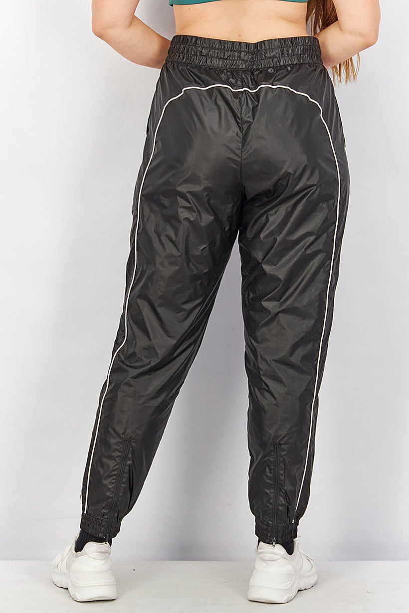 These track pants are perfect for women who love to train. They have a sportswear fit and a straight hem, with a drawstring closure at the bottom. The pants are made of 100% nylon and are machine washable. They are lightweight and ideal for training. The embroidered logo adds a touch of style to the pants. Please note that the product color may vary slightly due to lighting or monitor settings. These track pants are suitable for sports occasions and come in black. The size shown is in US measurements.