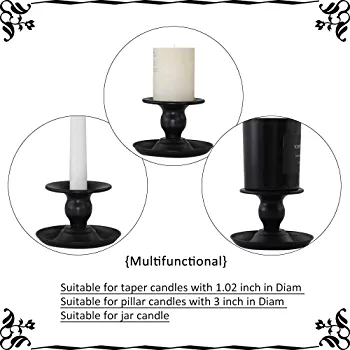 | nameOriginal | Taper Candle Holder Set, Black Retro Iron Candle Stick Holder, Candlelight Stand for Pillar Candles, Candle Stands Decorative for Weddings, Parties and Home Décor (Pack of 2)  |