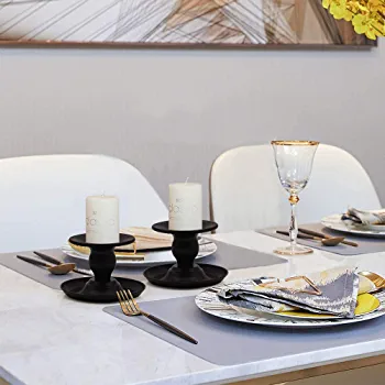 Introducing our Taper Candle Holder Set, the perfect addition to your home décor or special event. Made from high-quality black retro iron, these candle stick holders are both durable and stylish. The sleek design of these candlelight stands is perfect for holding pillar candles, creating a warm and inviting atmosphere in any room. Whether you’re hosting a wedding, party, or simply looking to add a touch of elegance to your home, these candle stands are the perfect decorative accent. This set includes two candle holders, making it easy to create a cohesive look in any space. Don’t settle for ordinary candle holders, elevate your décor with our Taper Candle Holder Set.