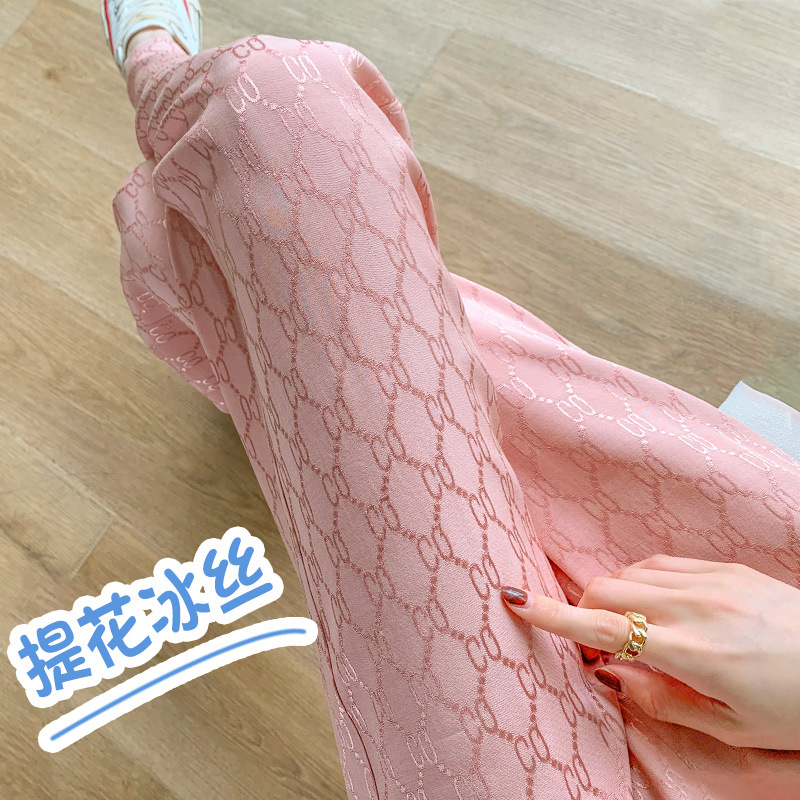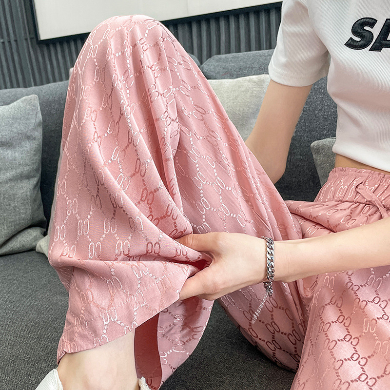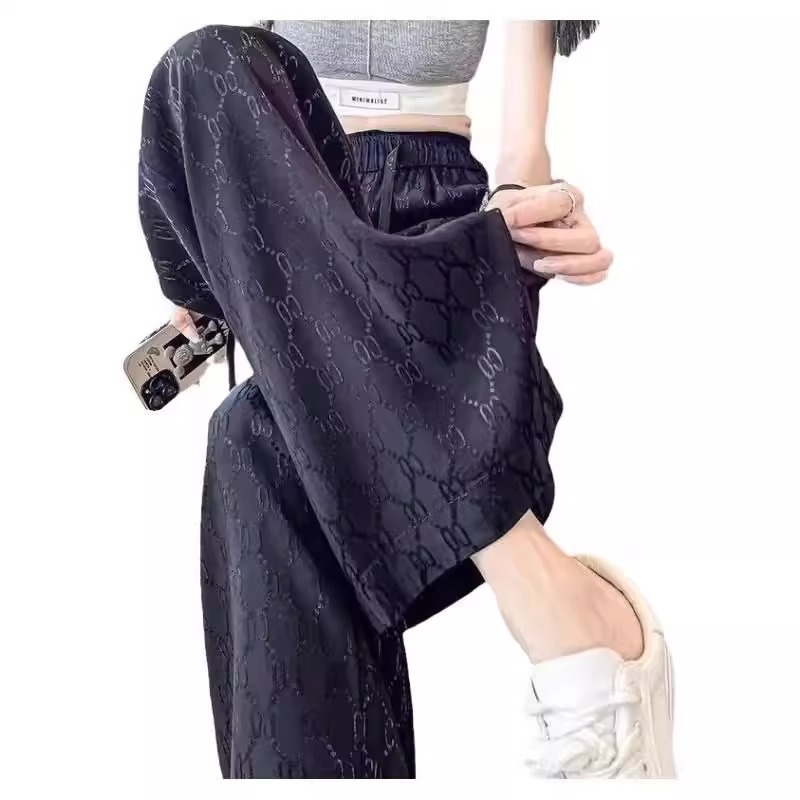 | nameOriginal | Black Jacquard Ice Silk Wide Leg Pants Women's Summer Thin High Waist Dosing Loose Slimming Casual Straight Pants |