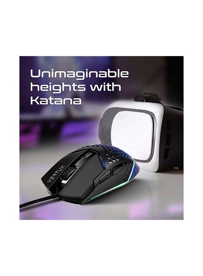 Black Katana Mouse with Honeycomb Design, 6400 DPI.