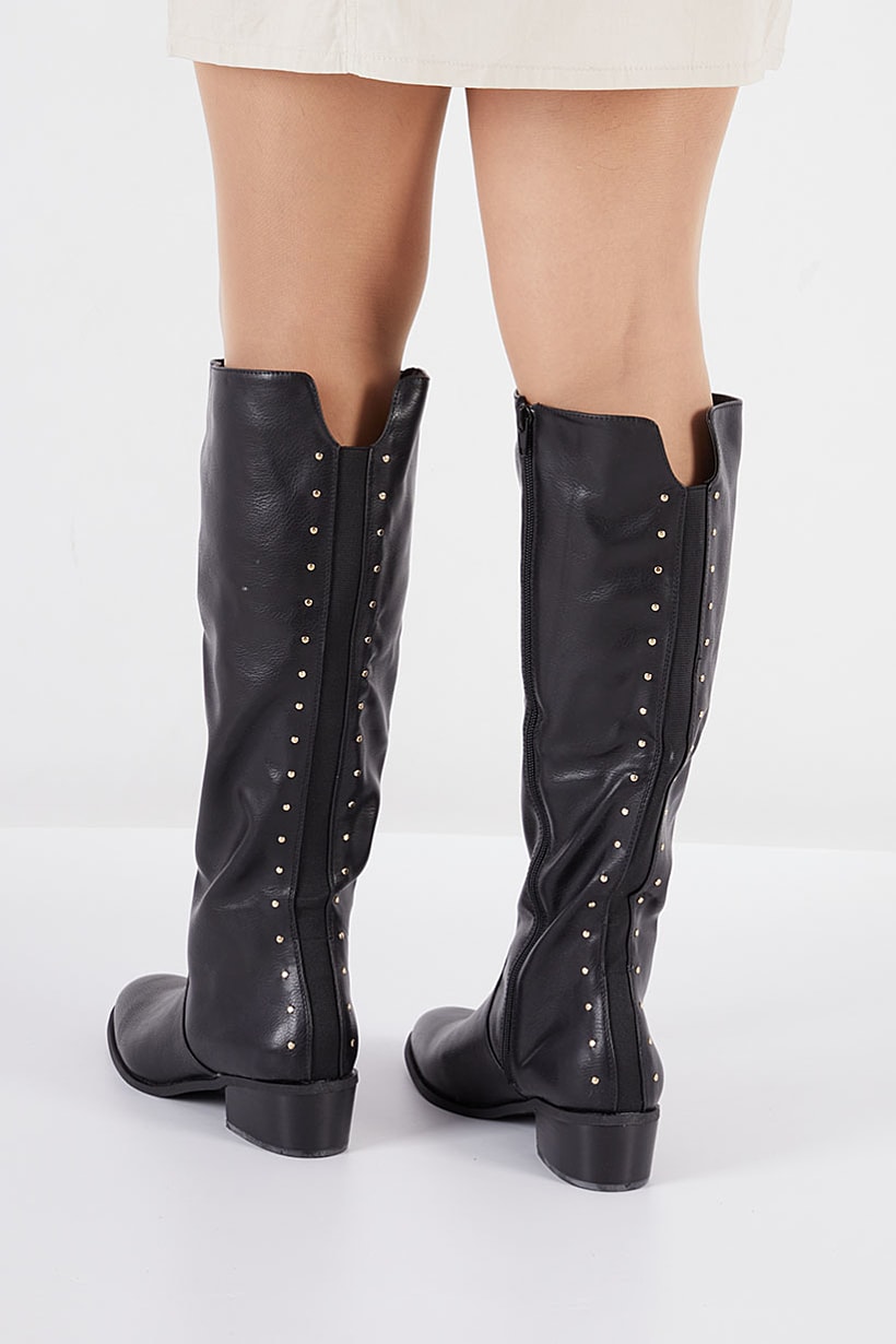 | descriptionOriginal | Style : Knee-length boot, Ideal For : Women, Occasion : Casual, Heel Height : 1.5" / 3.8 cm, Shoe Closure : Zipper closure, Heel Style : Chunky heel, Toe Style : Round toe, Sole Material : Synthetic sole, Shoe Material : Synthetic Leather, Color Family : Black, |